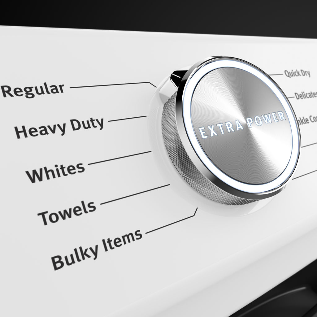 The Extra Power button amplifies drying power on any program, increasing time, heat and tumble.