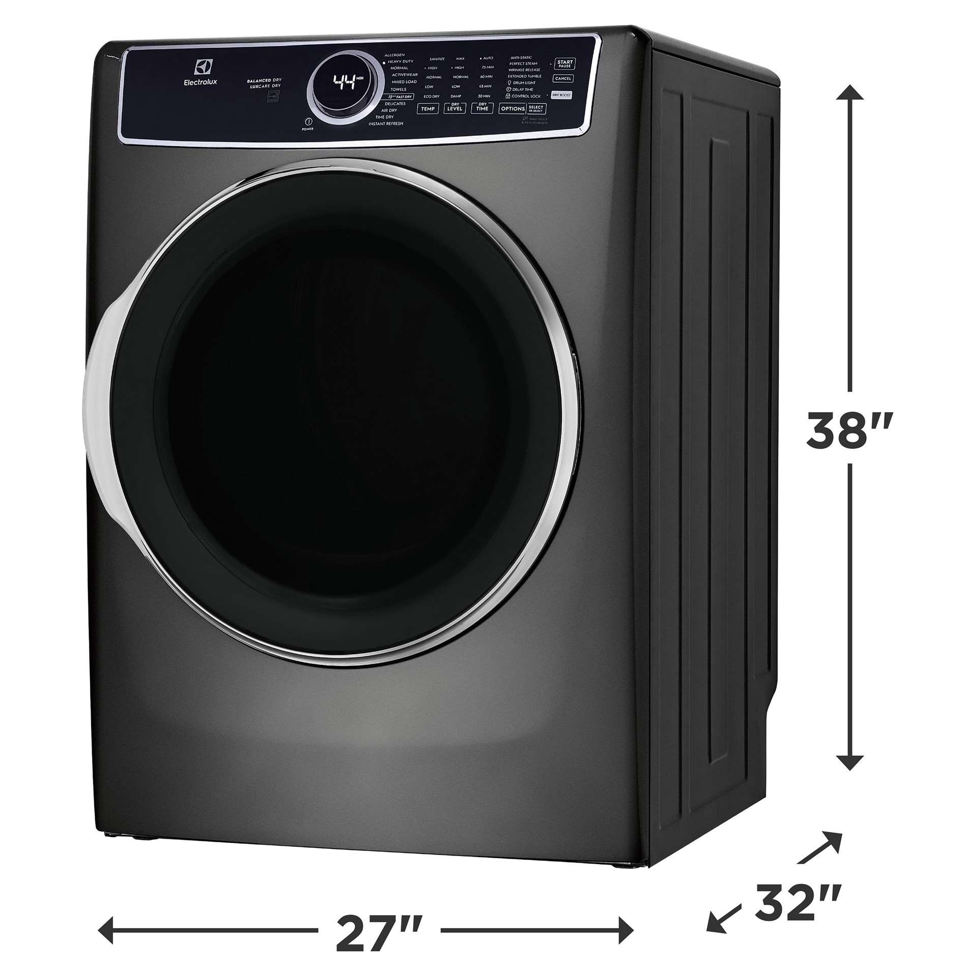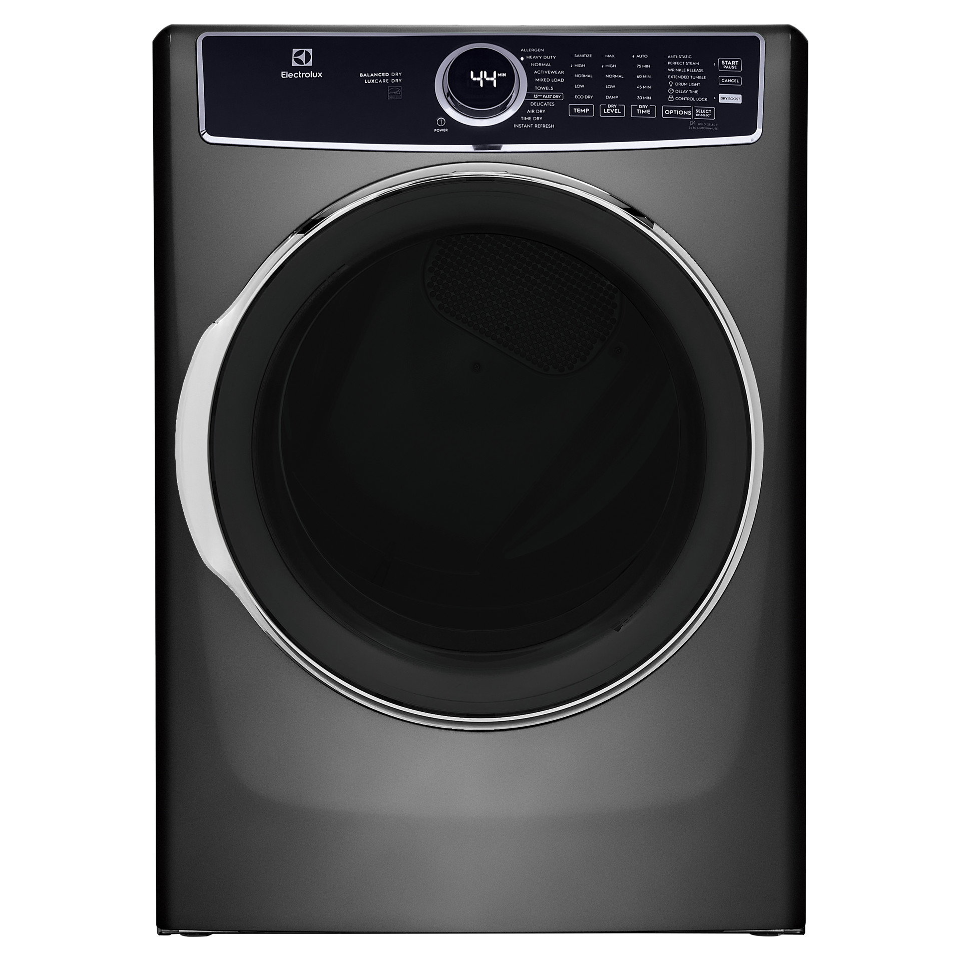 To further these benefits, the stainless steel drum resists corrosion and comes with a ten-year warranty to ensure an even longer service life than a typical front-loading dryer. The titanium finish reduces lint while protecting against stains thanks to titanium's natural antibacterial properties.