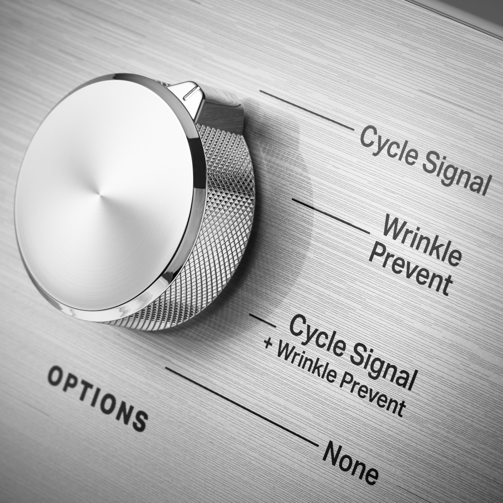 Keeps clothes tumbling for up to 150 minutes after the cycle ends to reduce wrinkles.
