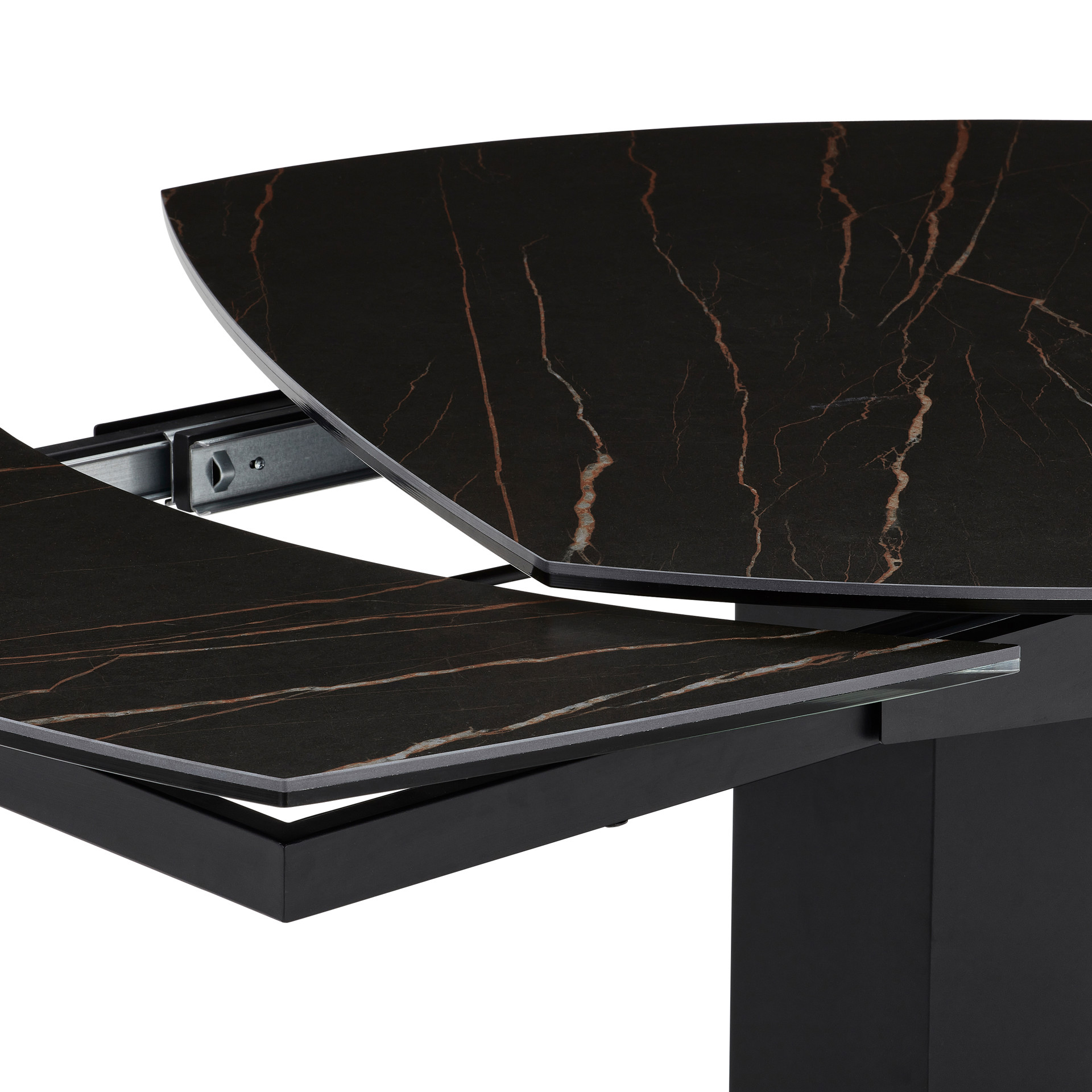 The ingenious extension mechanism allows you to easily adapt the table to your needs, perfect for family meals as well as entertaining guests. The ceramic surface resists scratches, heat, and stains, offering you outstanding ease of maintenance.