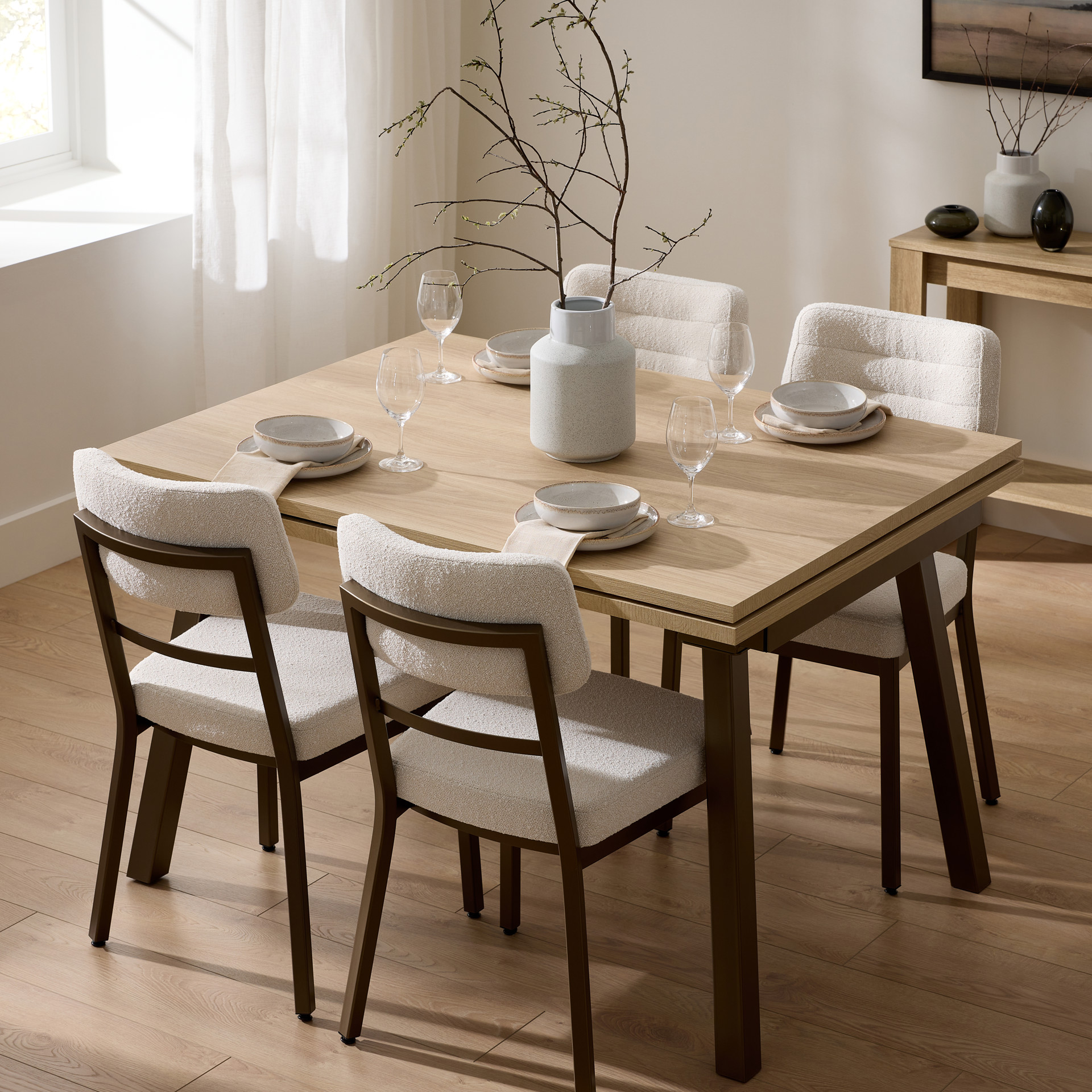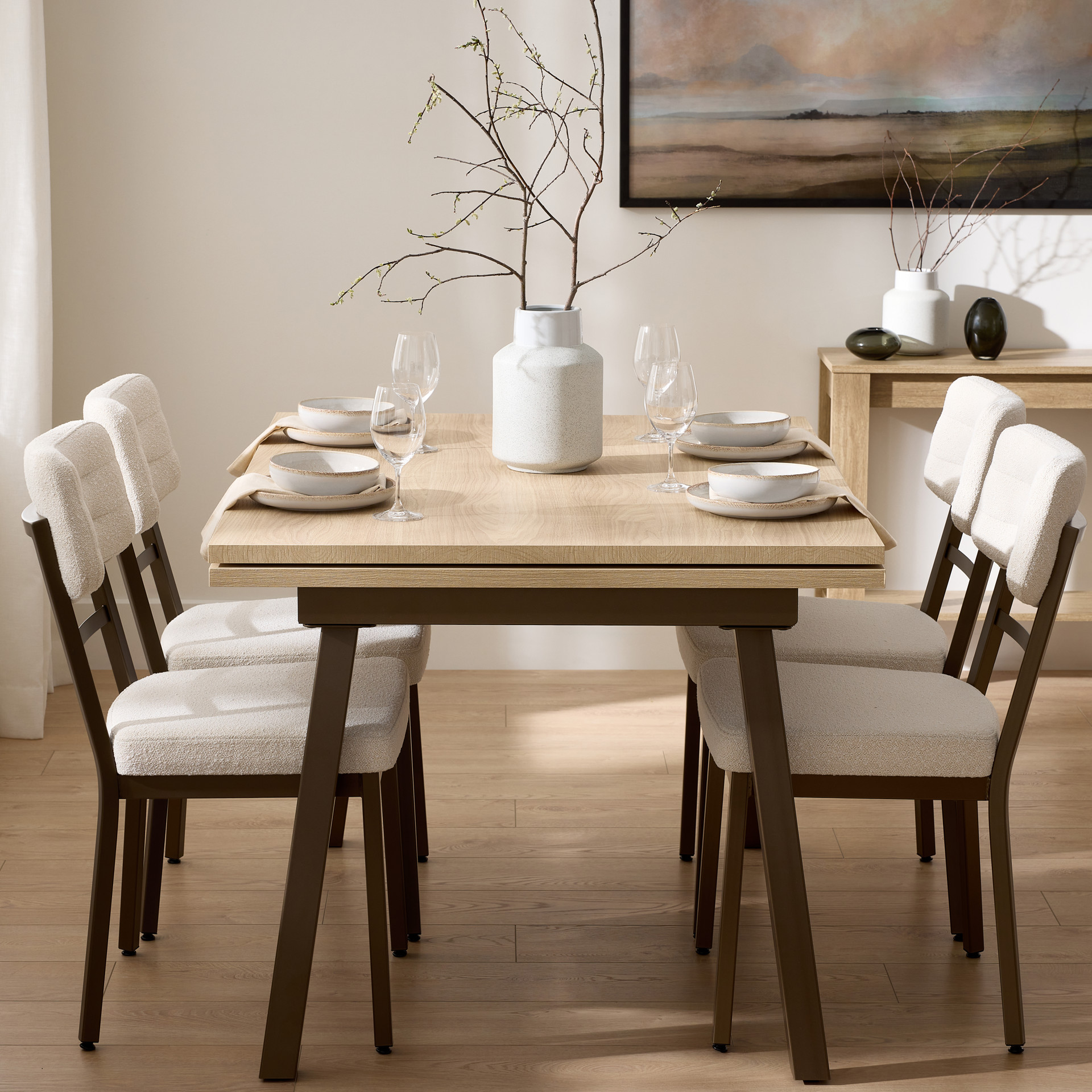 This extendable dining table combines practicality and elegance to adapt your dining space to any occasion. With its clever extension system, it easily transitions from an intimate size for everyday meals to a large, welcoming table for hosting family and friends.