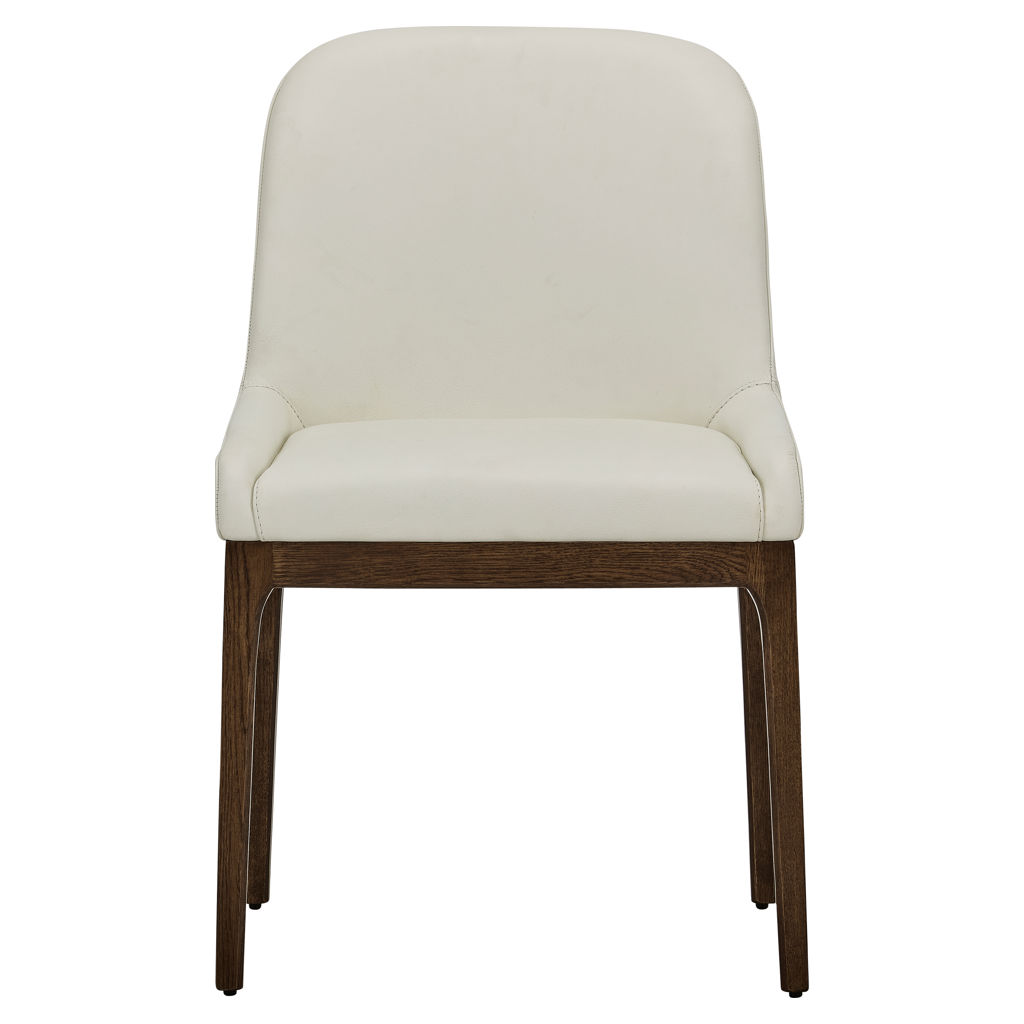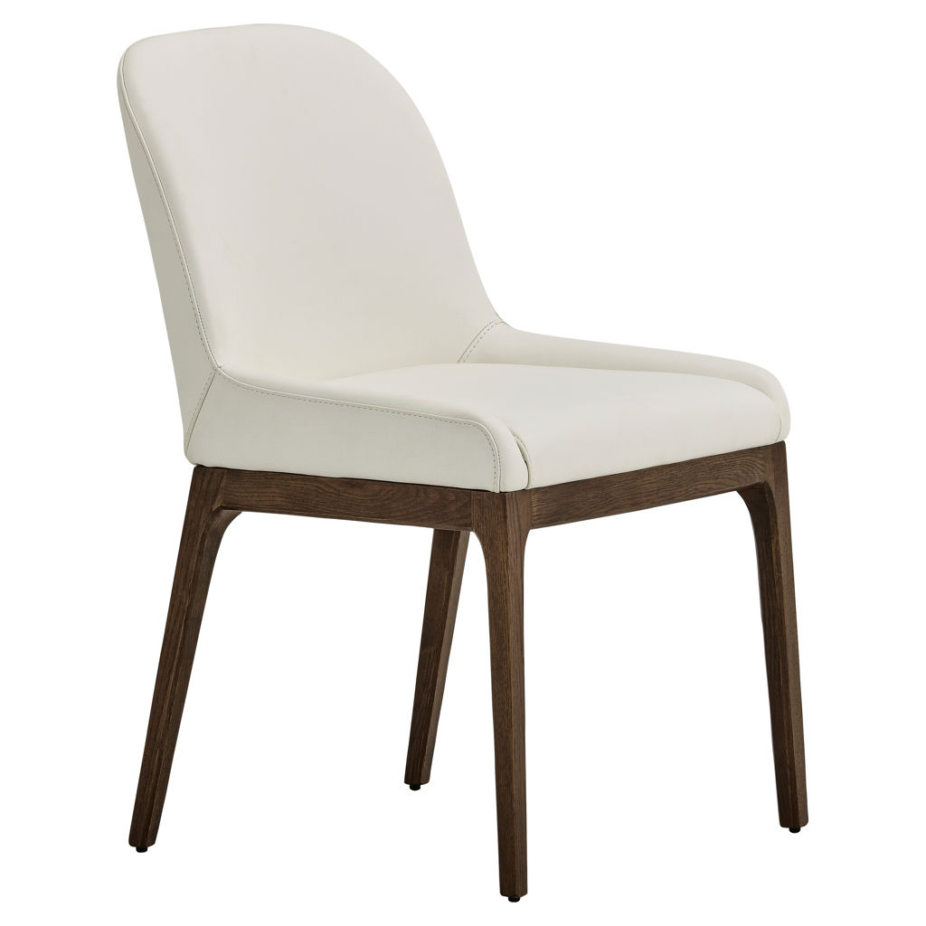 Discover the Ann chair, where refinement meets everyday comfort. Its genuine cream white leather adds natural sophistication to your space, while the warm wooden base strikes the perfect balance between modernity and authenticity.