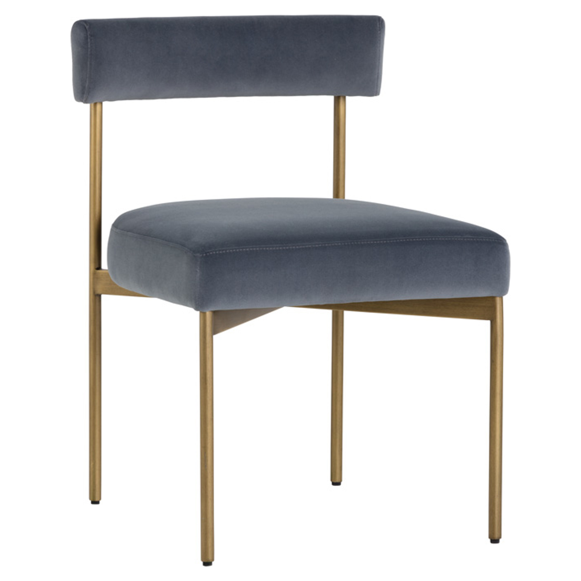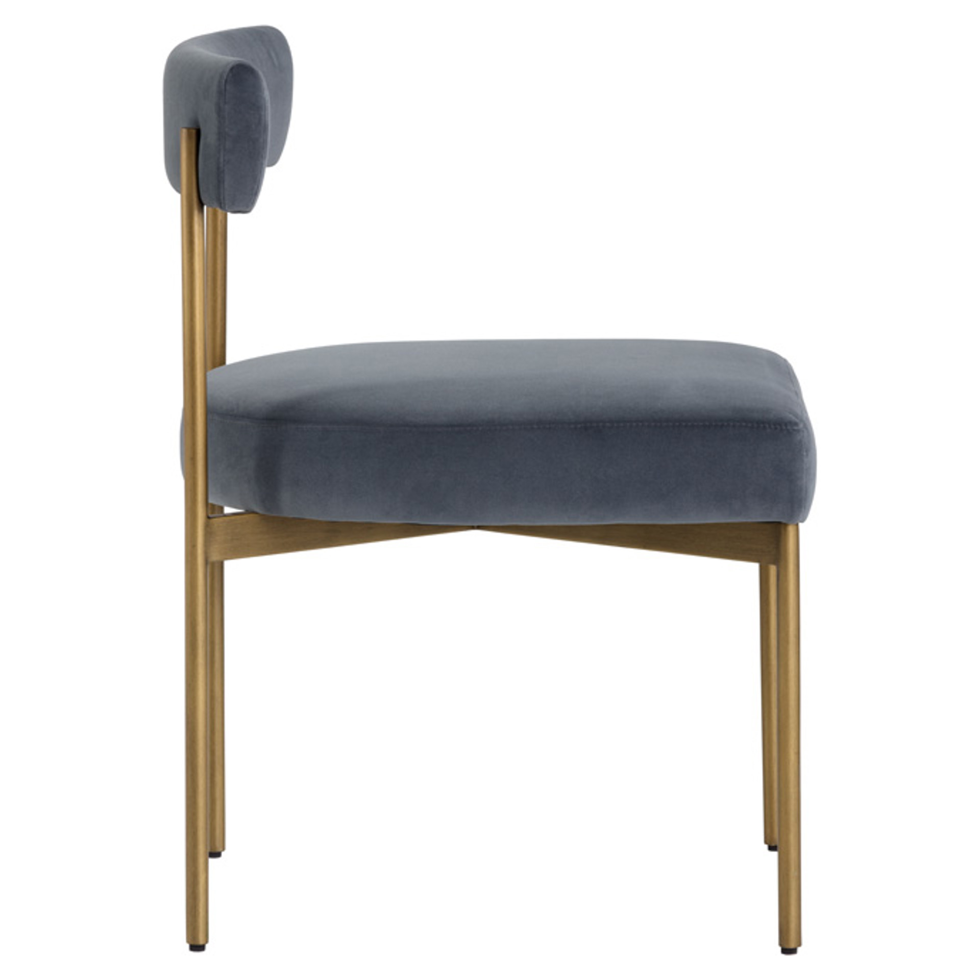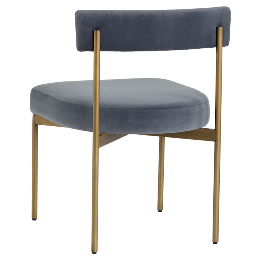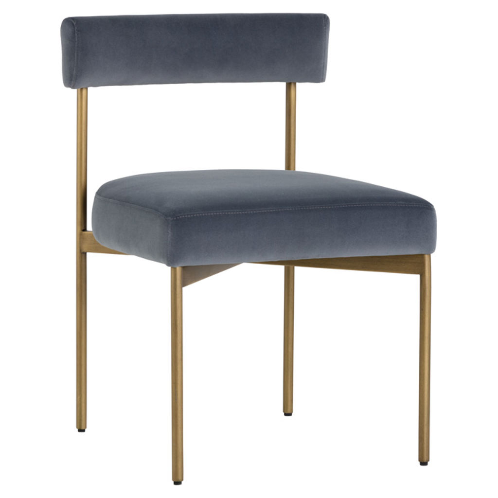 Exude mid-century style with this open back dining chair from our Zenn collection. Made in fabric with an antique brass steel frame.