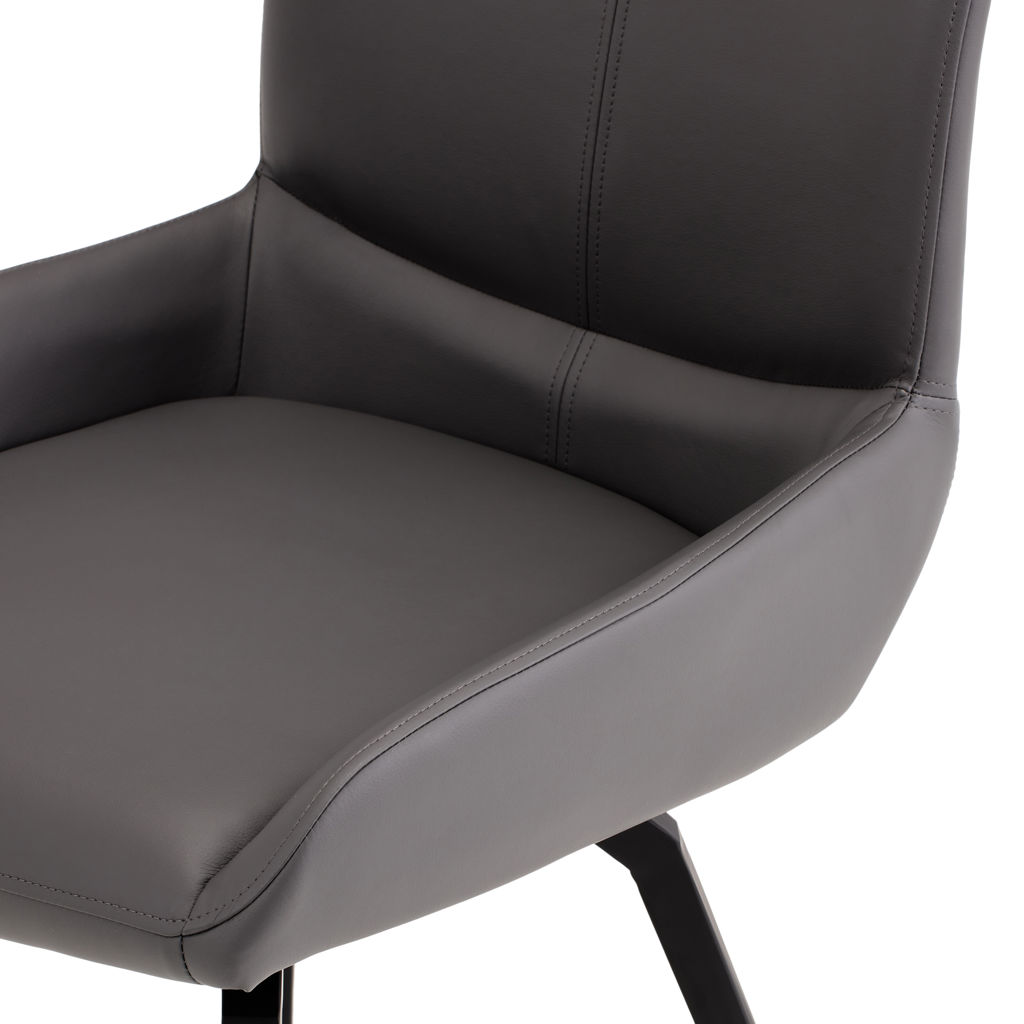 With its contemporary design, clean lines, and black metal swivel base, it fits seamlessly into both classic and modern interiors. The ergonomic armrests and generously padded seat provide optimal comfort for long meals or relaxed moments.