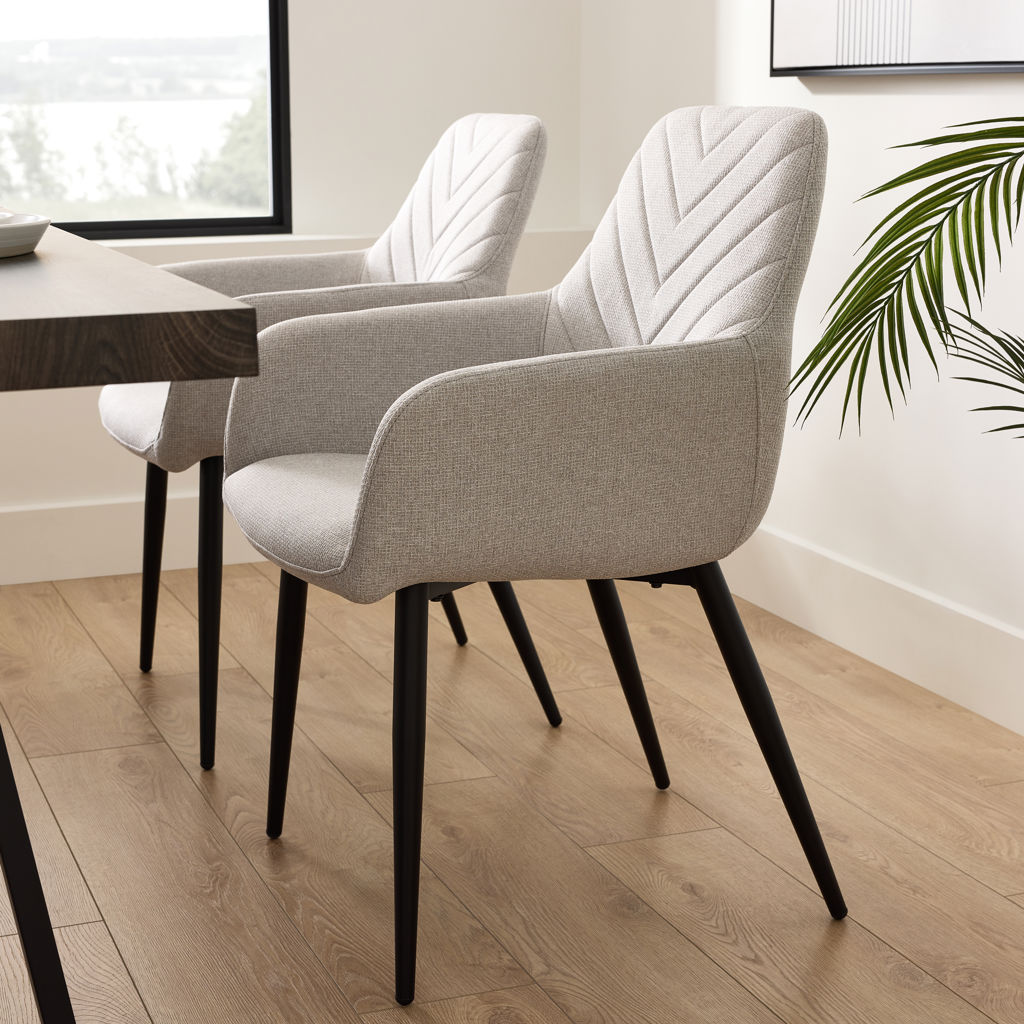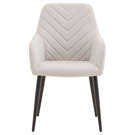 This chair combines comfort and refinement to transform your meals into special moments. Its textured chevron-patterned backrest adds a subtle touch of originality, while the gray fabric upholstery blends naturally with any décor.