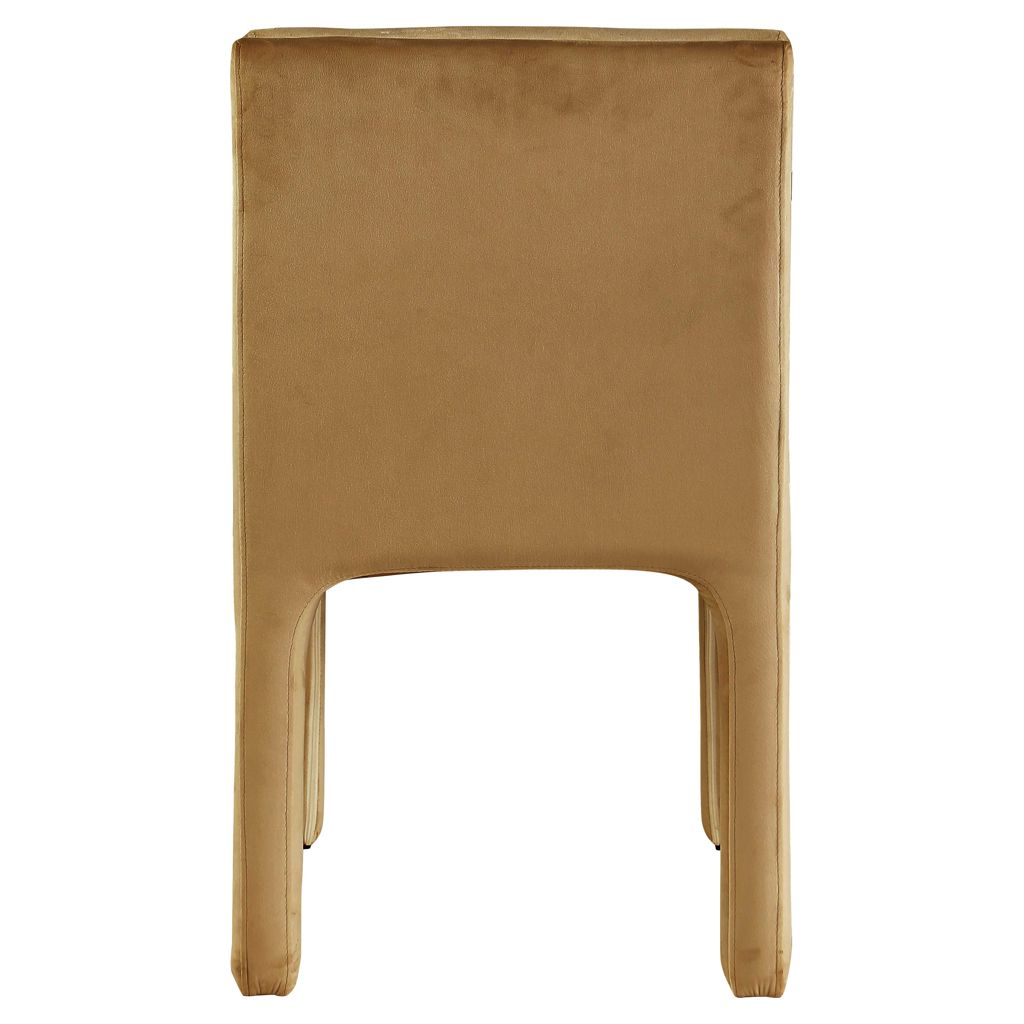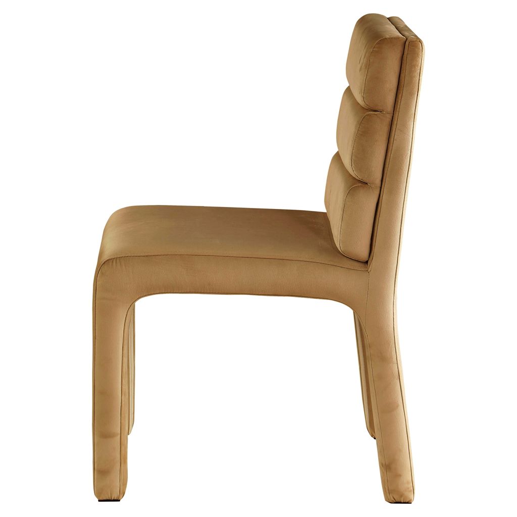 Luxurious velvet upholstery covers the chair's back, seat, and legs, lending it a soft-to-the-touch feel, and the back is padded with soft foam and channel tufted for added comfort dinner guests can appreciate.