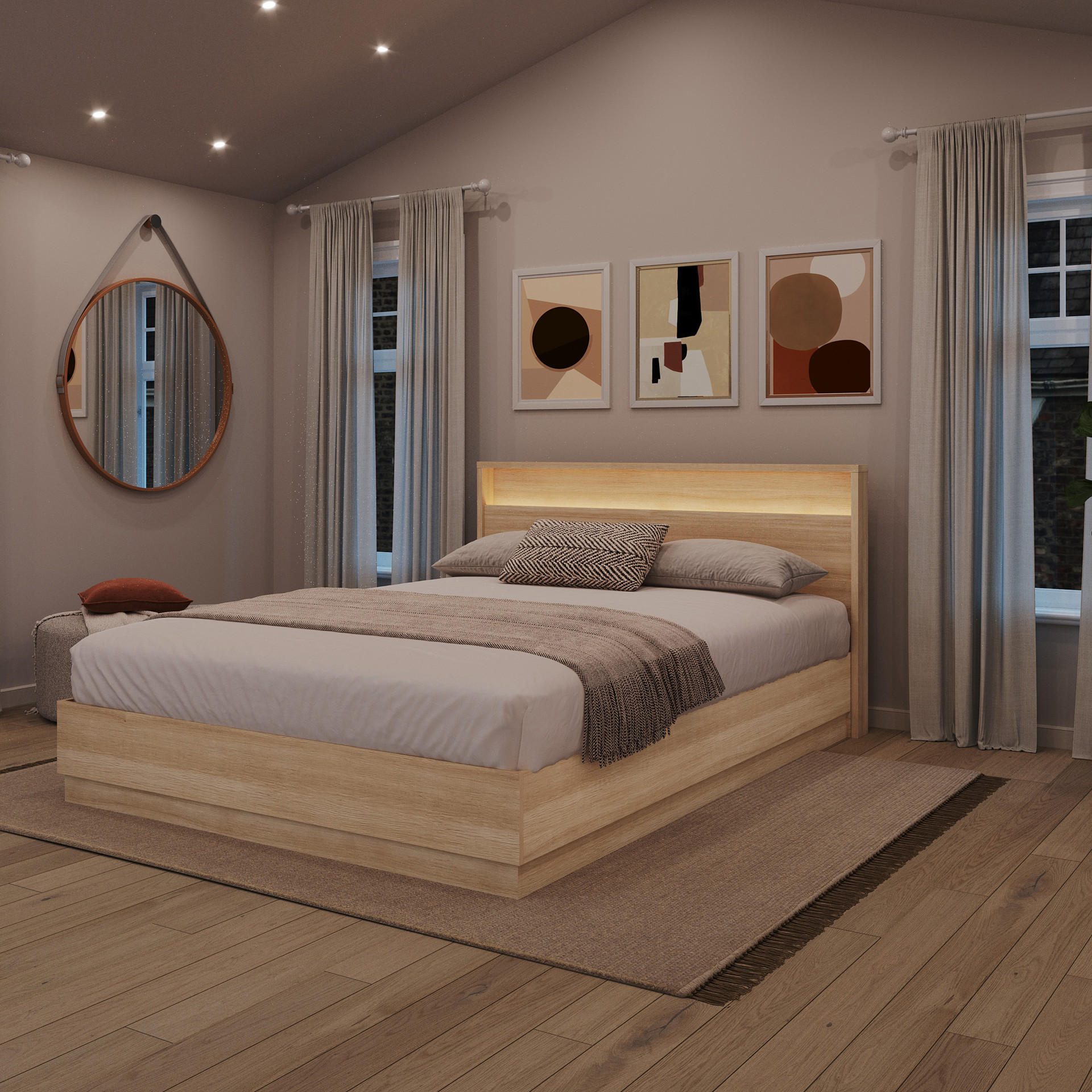 The built-in light enhances the room's ambiance, perfectly complementing the matching bedframe.