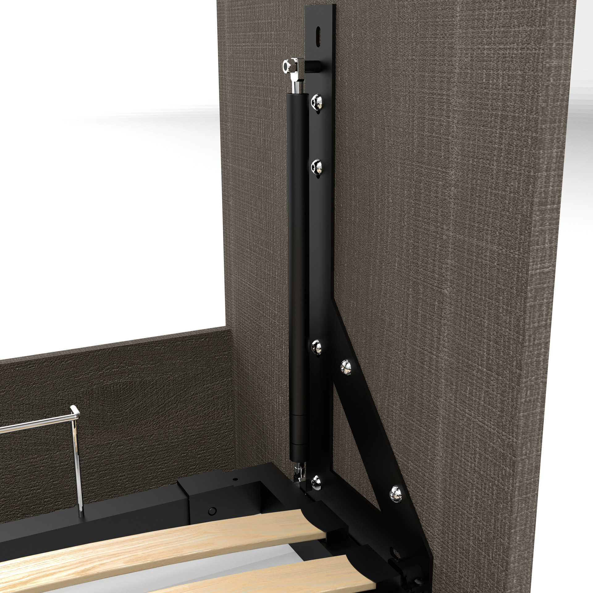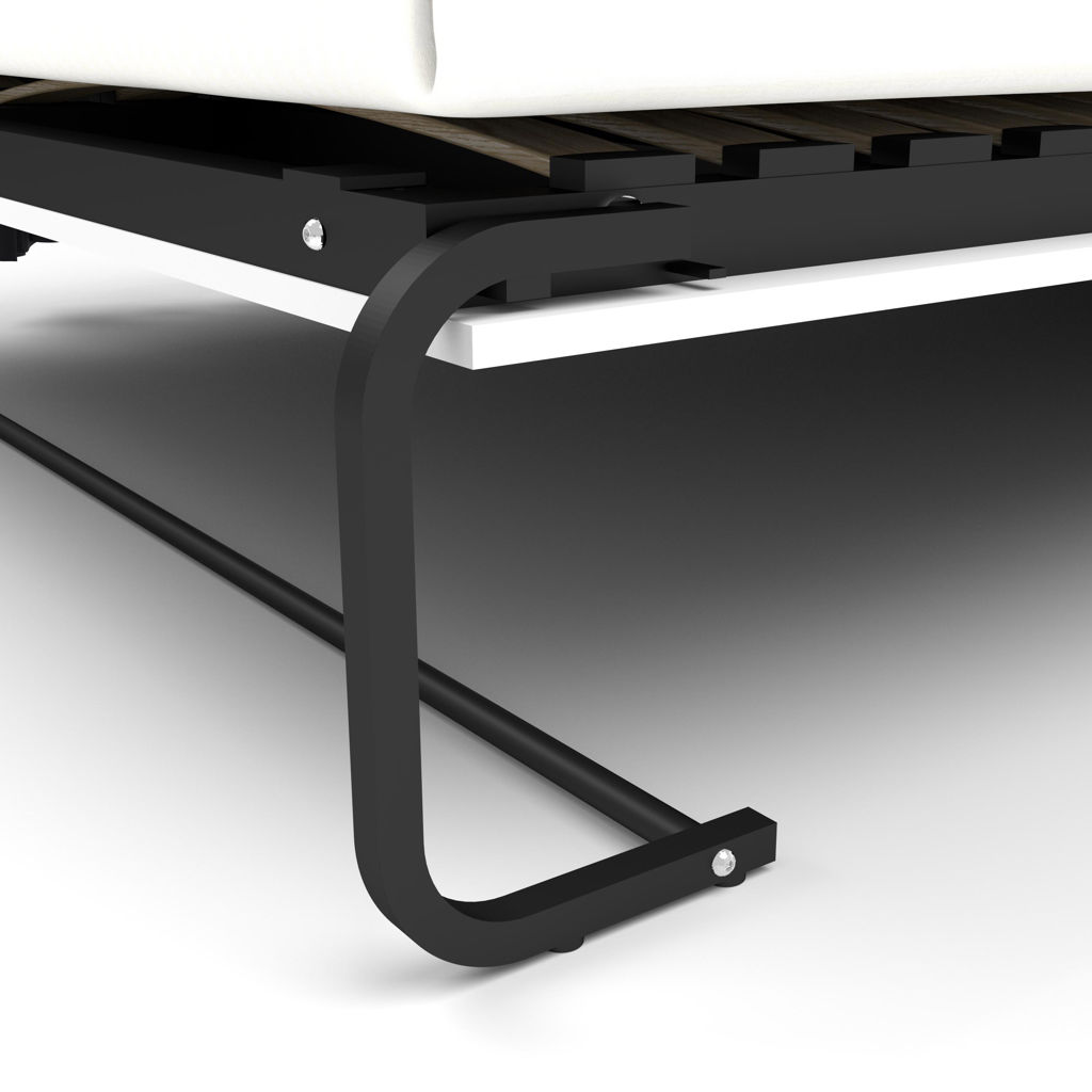 The retractable bed is designed to accommodate most standard queen-size mattresses (8 to 12" or 20.3 to 30.5 cm thick; 60 to 90 lbs or 27.2 to 40.8 kg; 60 x 80" or 152.4 x 203.2 cm) and can support up to 1000 lbs (453.6 kg) (including mattress weight). When opened, the bed requires a 92.9" (234.2 cm) clearance from the wall.
