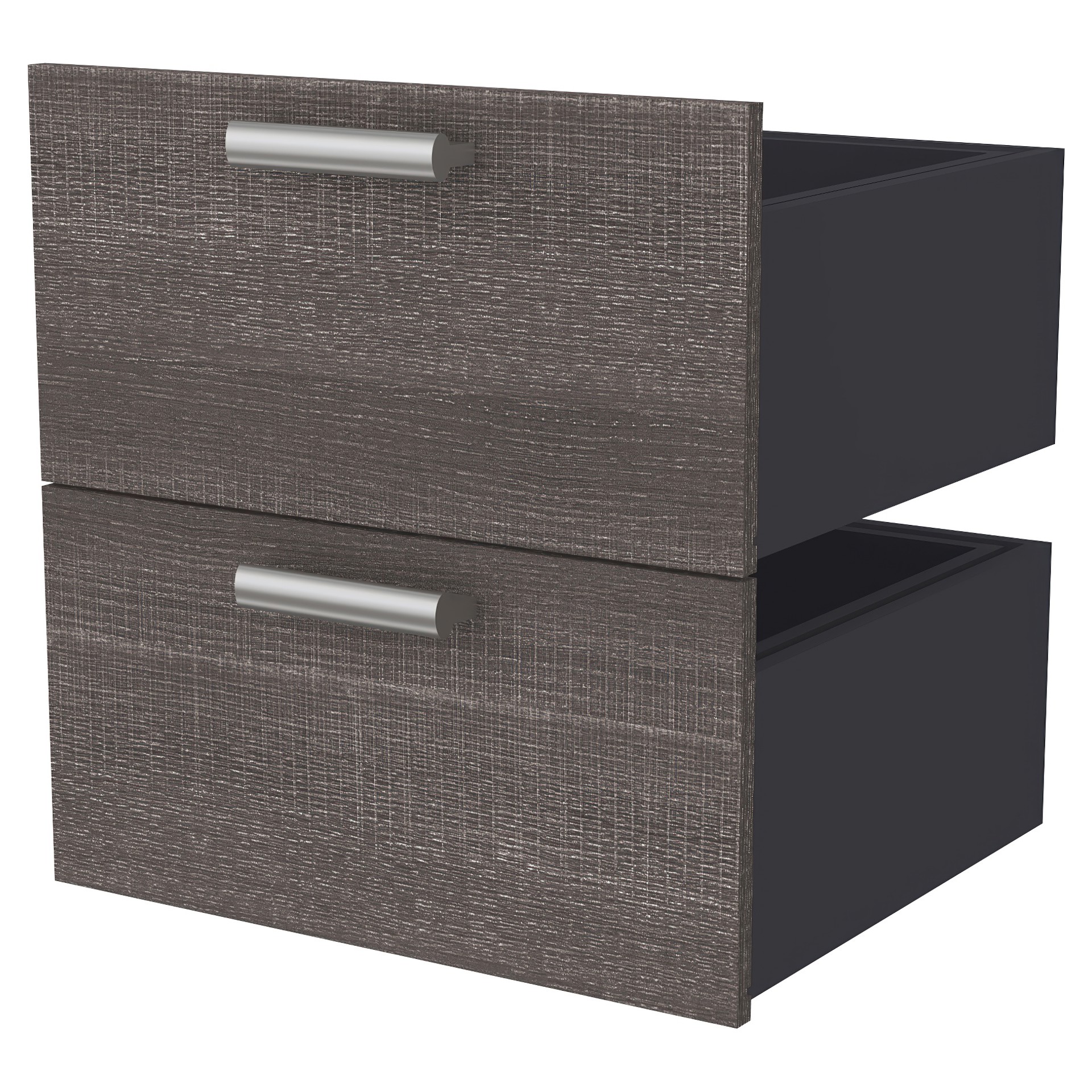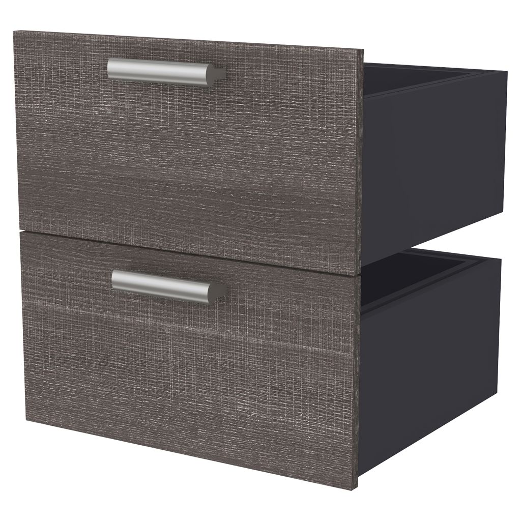 • Each storage unit offers 2 floating shelves, 2 fixed shelves (top and bottom of the unit), 2 adjustable shelves and 2 drawers that open slickly on ball-bearing slides