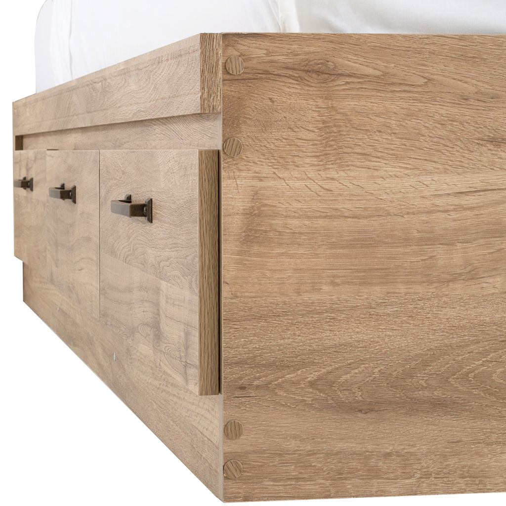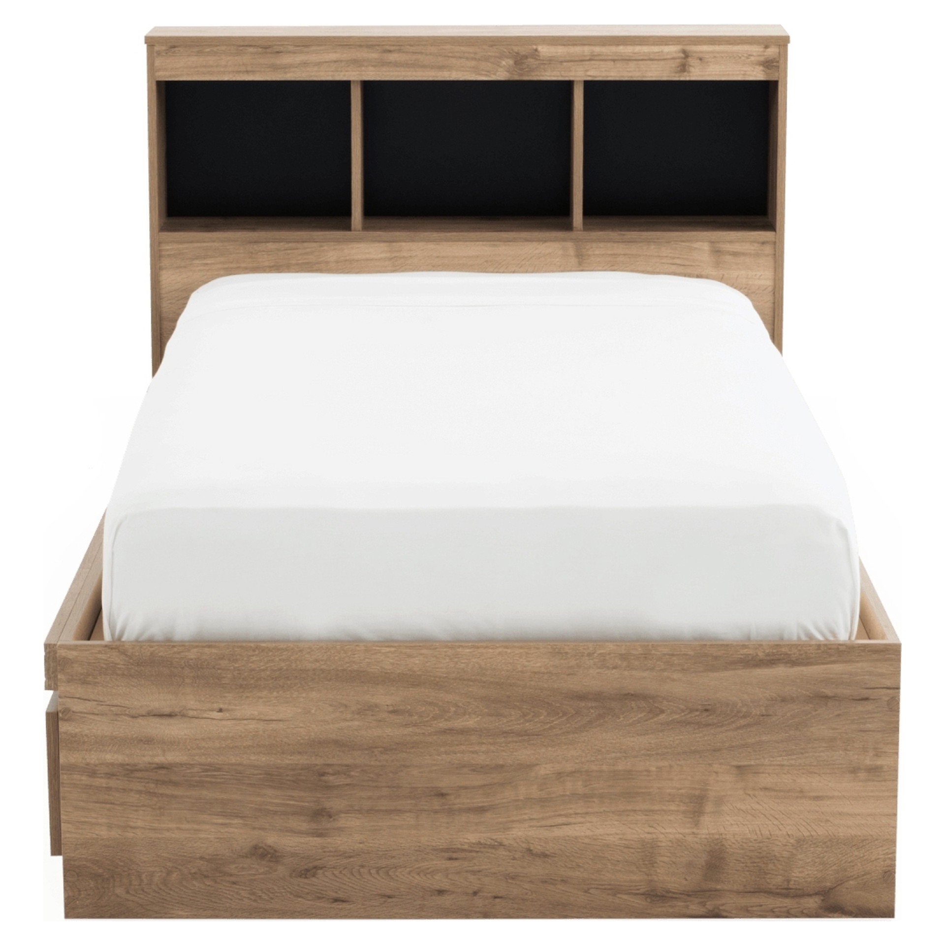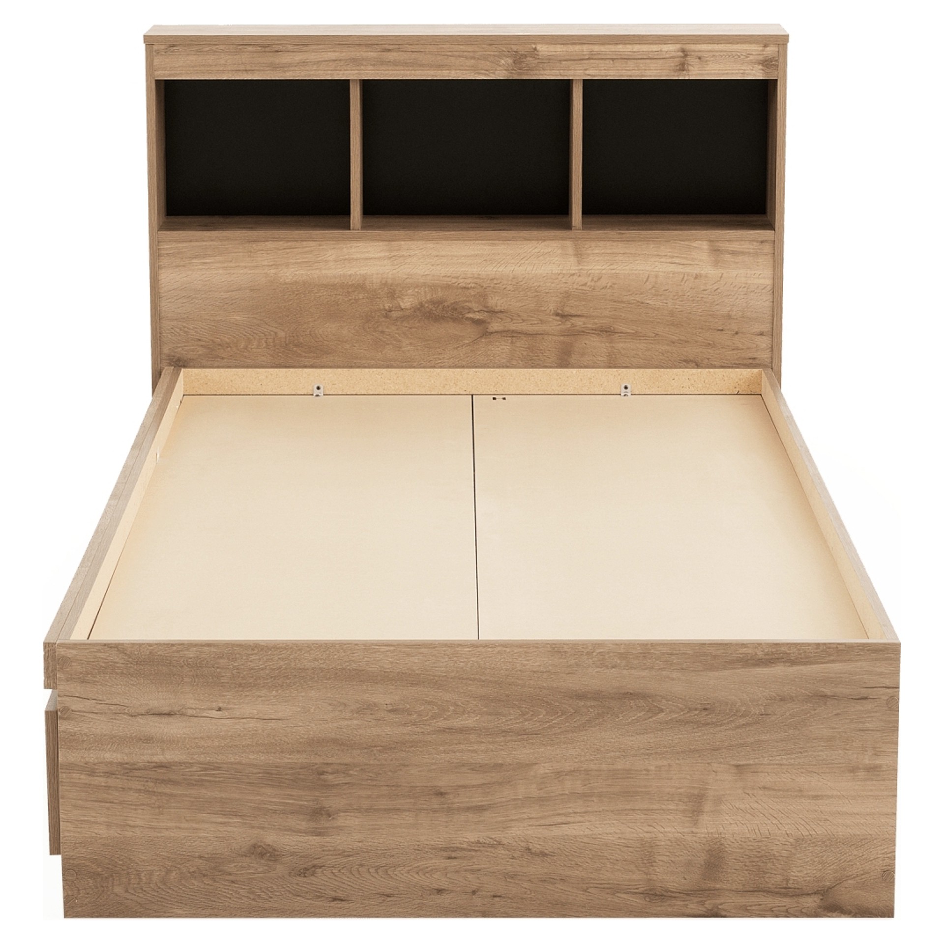 Transform your bedroom with this clever bed featuring built-in storage. Its three spacious drawers offer the perfect solution for organizing clothing, bedding, or seasonal items, while the headboard with open compartments keeps books and everyday essentials within easy reach.