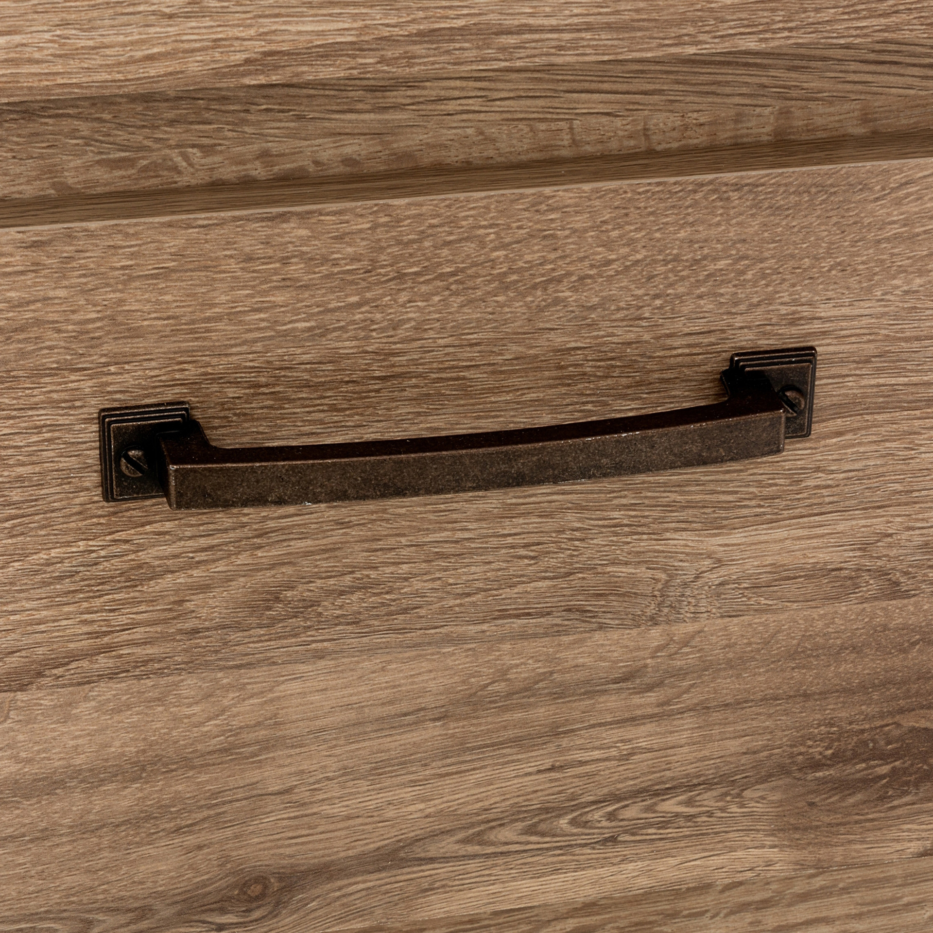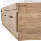 Crafted from durable melamine with a warm natural wood finish, this bed combines practicality with a clean, streamlined look. The discreet handles and simple lines blend harmoniously with any décor.