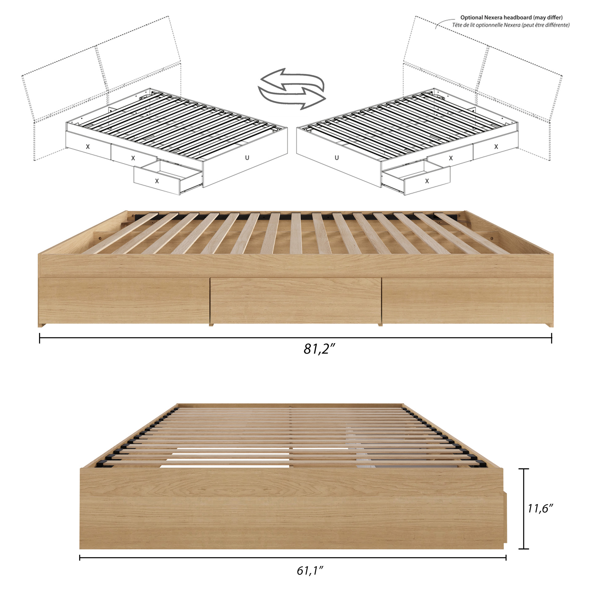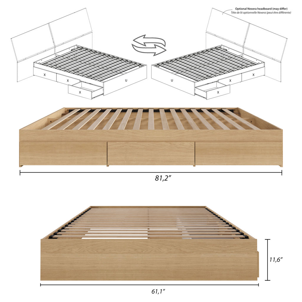 The Nexera Queen-Size Storage Bed can be paired with different Nexera queen-size headboards to create a complete bed set with lots of storage.