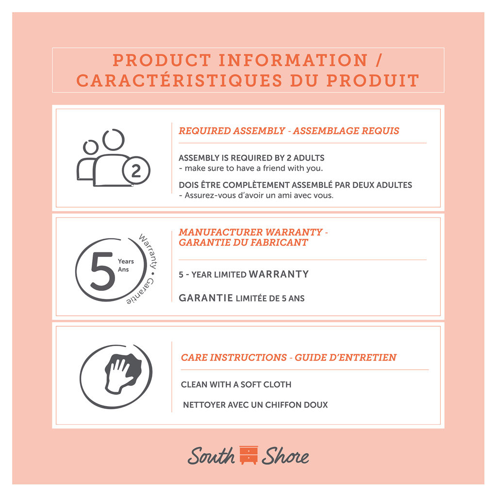 EASY-TO-FOLLOW ASSEMBLY INSTRUCTION: All our products have an assembly guide with clear instructions, guiding you through each step. If you have any questions please do not hesitate to contact South Shore Furniture for immediate support. This item is shipped in 1 box, make sure you have a friend with you.