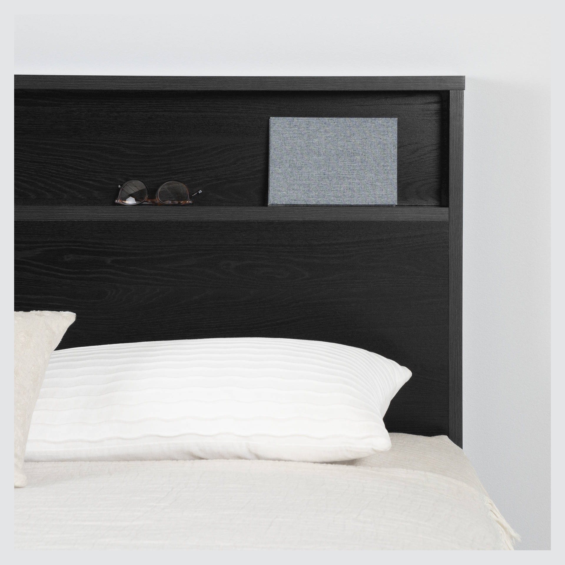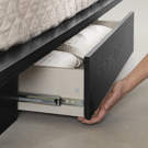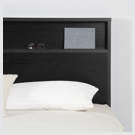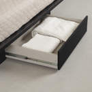 PRACTICAL STORAGE: Enjoy a spacious bed drawer for larger items and a handy shelf on the headboard for smaller ones.