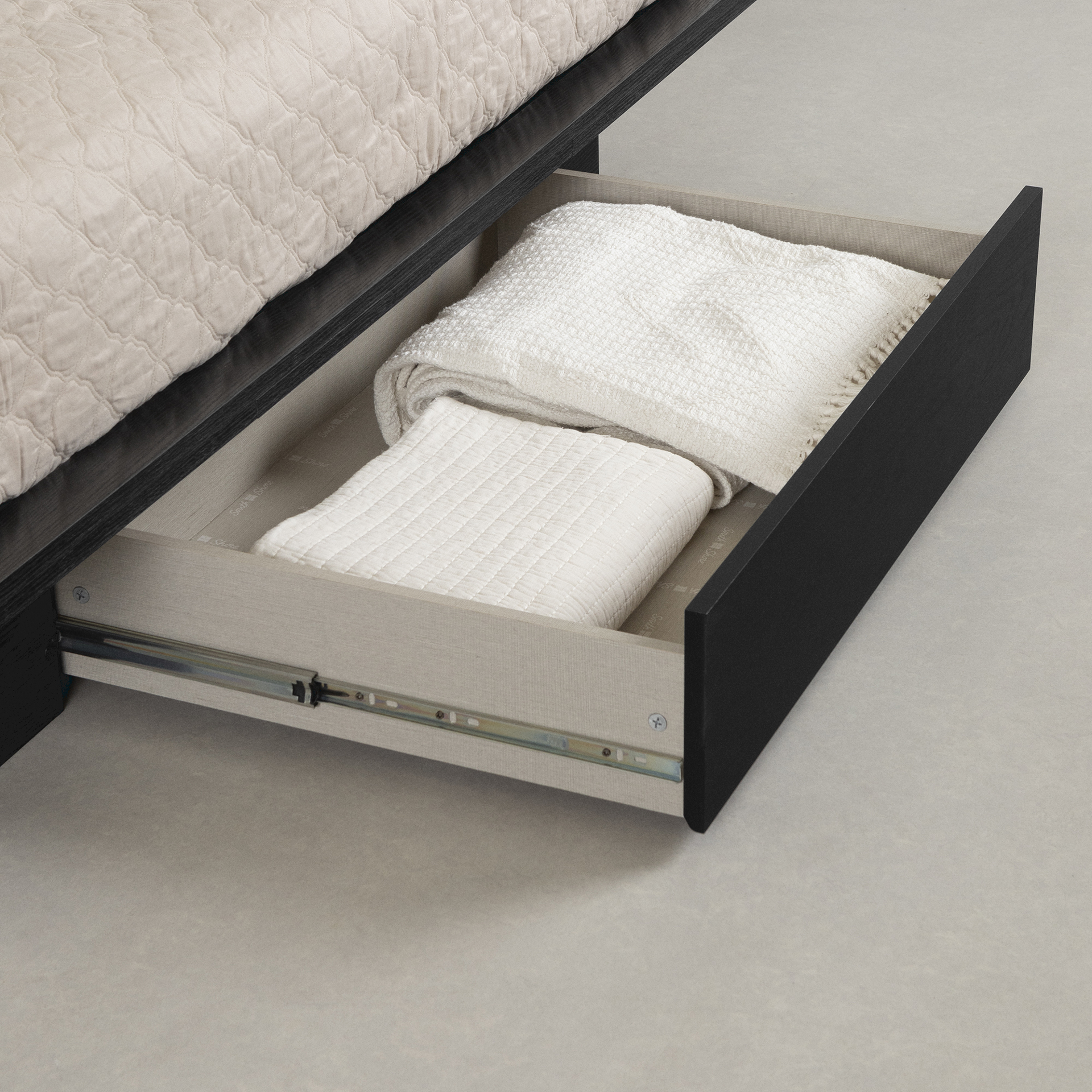 Plus, the bed's drawer, with its metal slides, allows for easy access to everything stored inside. Easy and quick to assemble, this set will transform your bedroom into a total relaxation spot.
