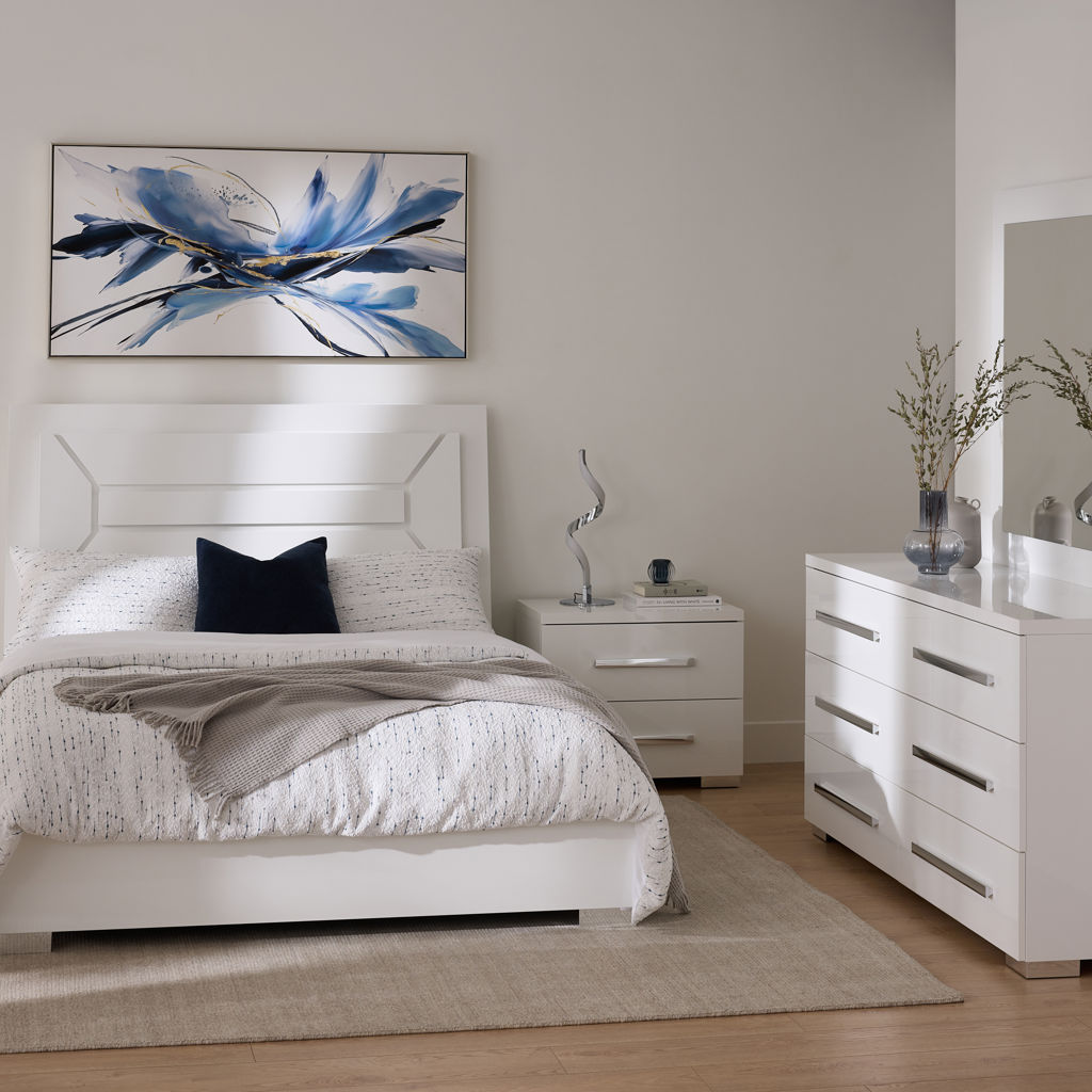 Panama White Lacquer Bed with LED Headboard (Queen) NCA *PANAMA-HQ/RQ/RQF