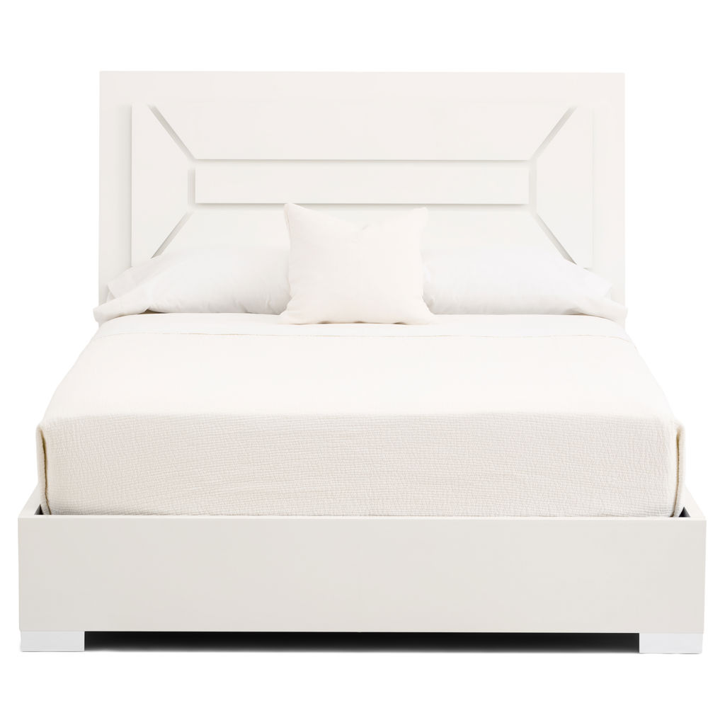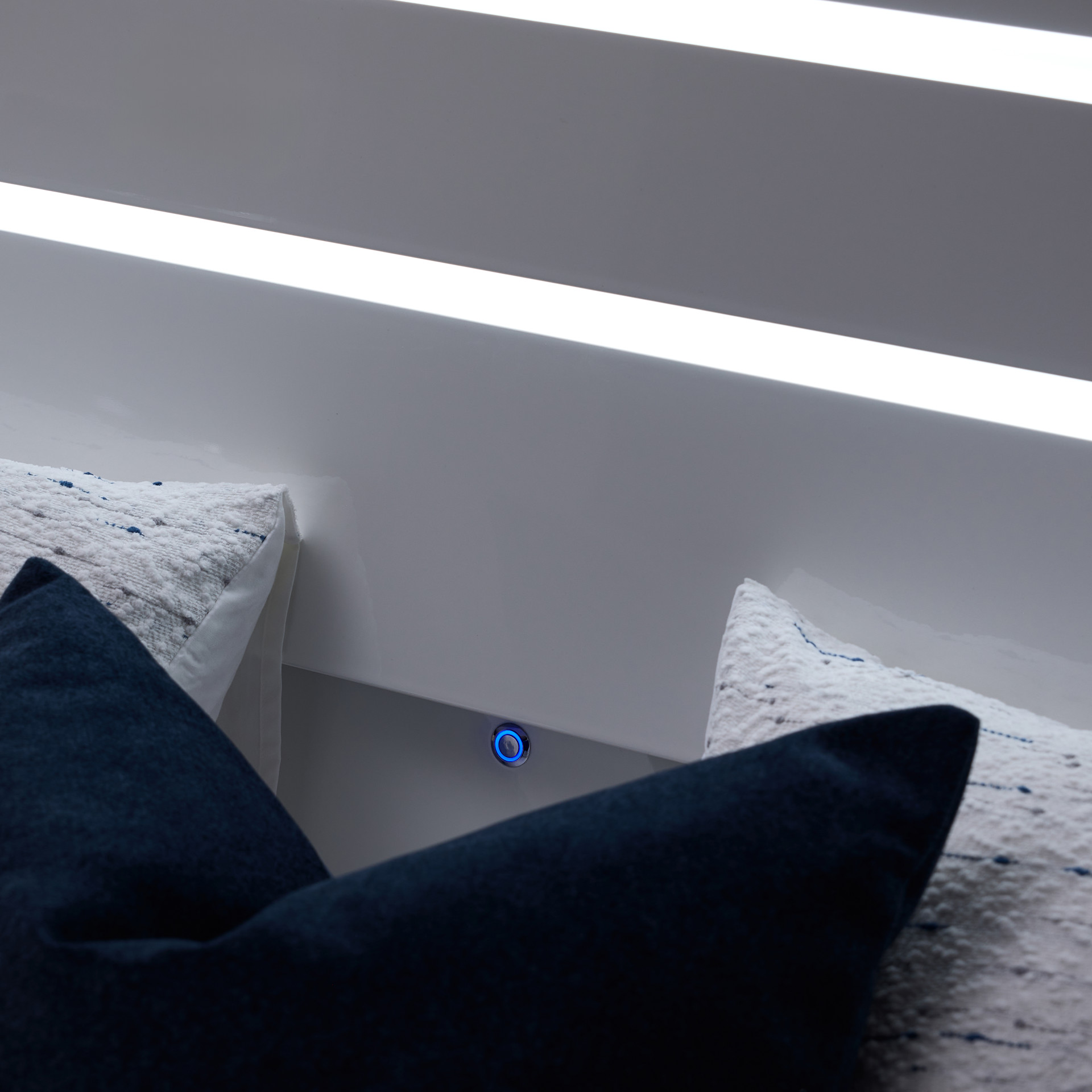 Panama White Lacquer Bed with LED Headboard (Queen)