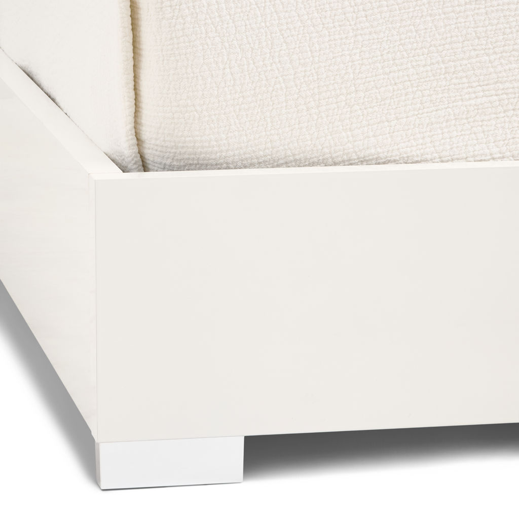 Crafted from durable, pristine white melamine, this bed complements any décor and stands the test of time. Its generous structure provides convenient storage beneath the mattress, maximizing your space with style.