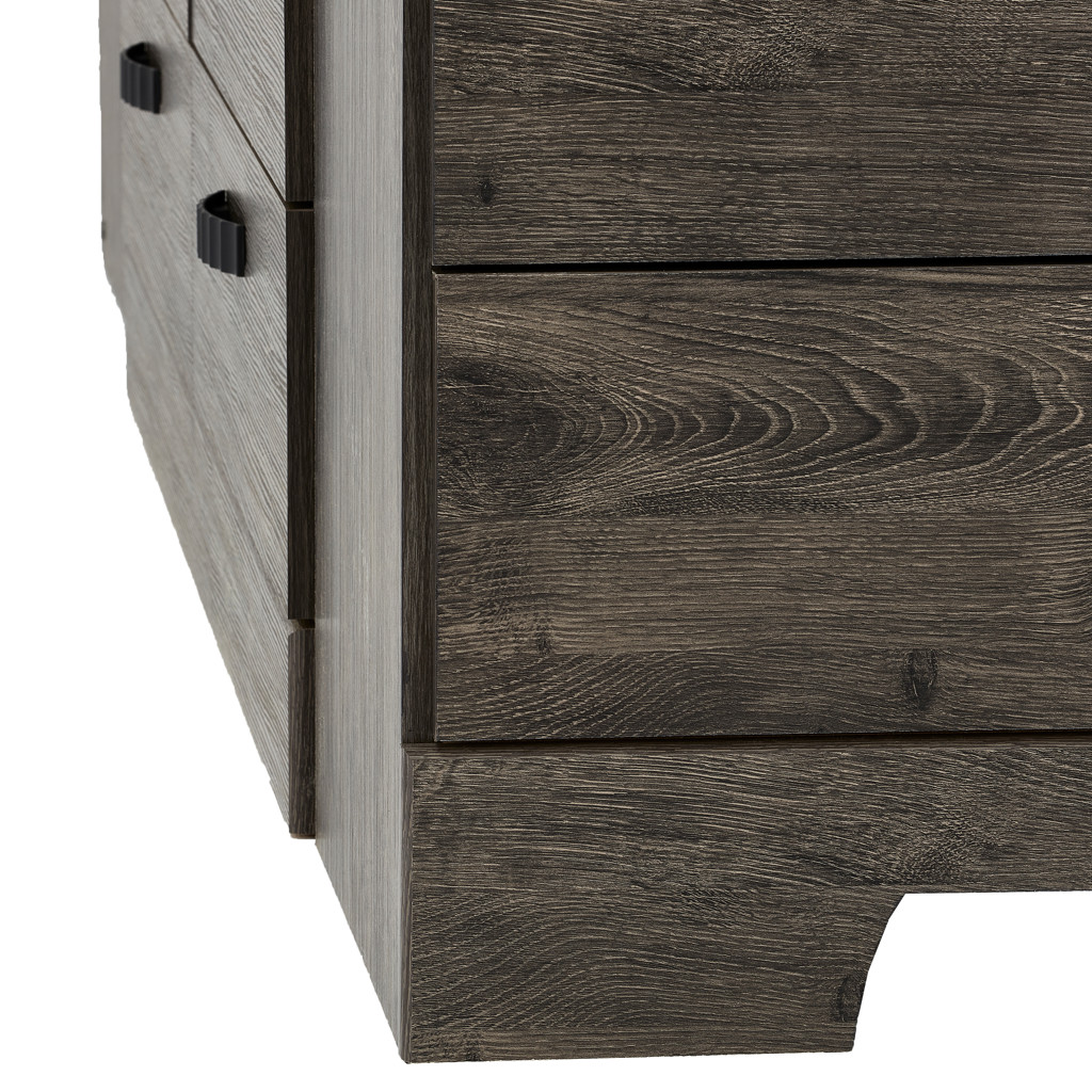 The grey wood finish adds a contemporary touch that complements a variety of décors. Subtle handles provide easy access to your belongings, while the sturdy construction ensures durability and stability.
