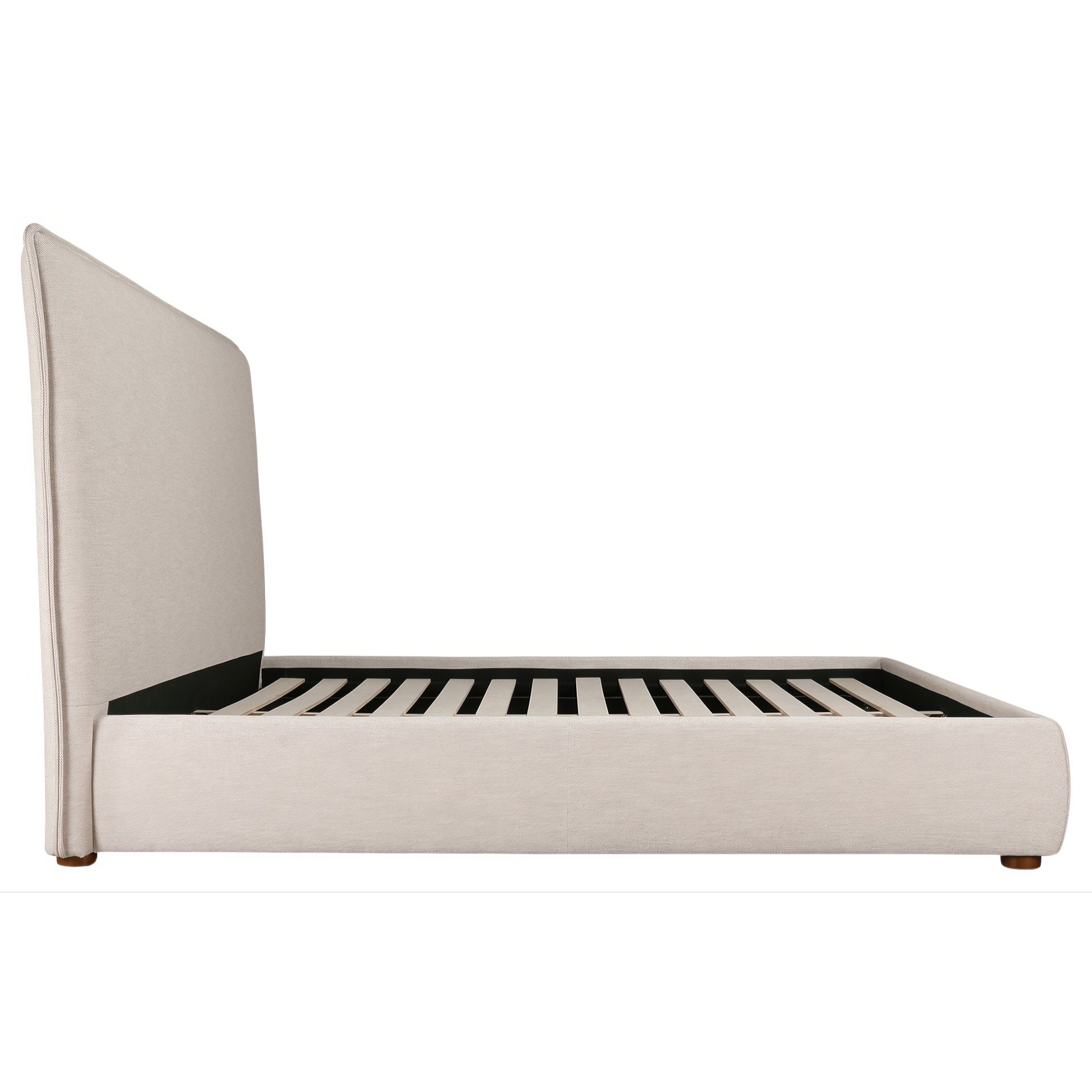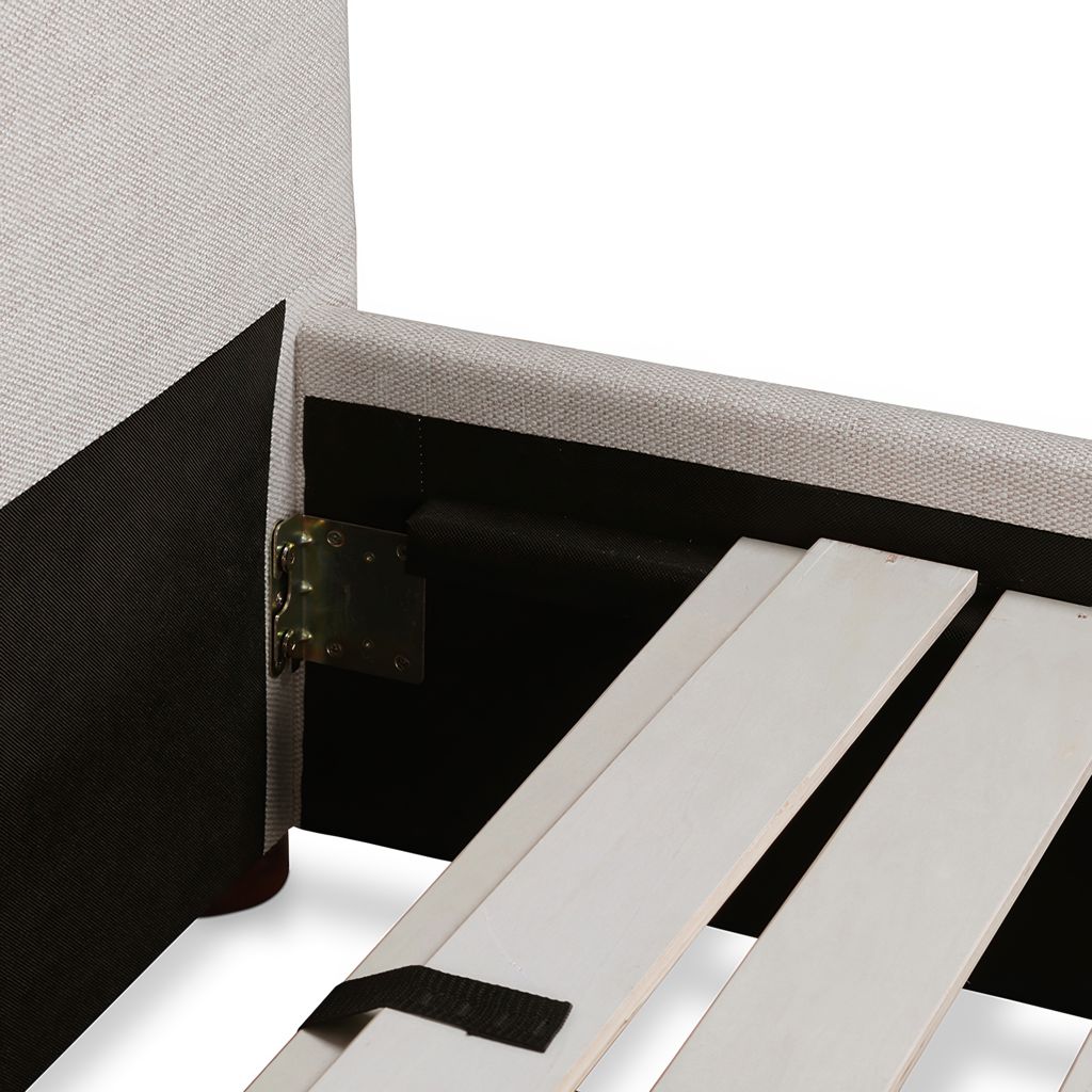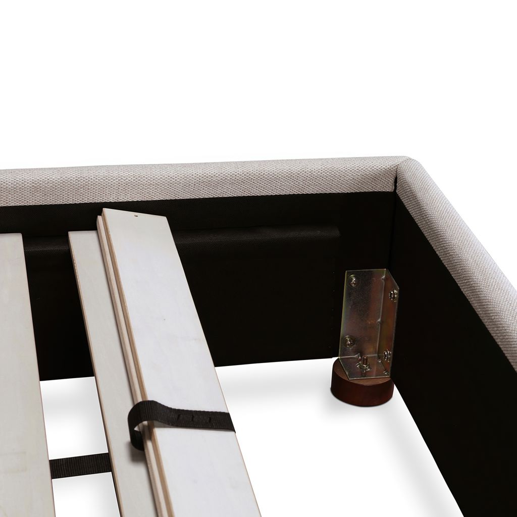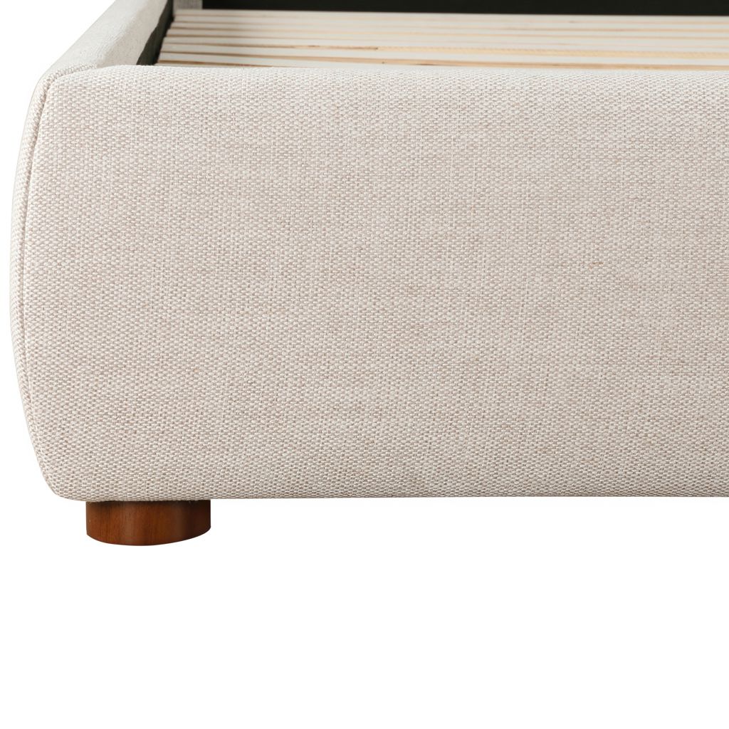 Upholstered from a soft, linen blend fabric, the Luzon bed is relaxed and welcoming. Its padded tall headboard and solid pine and engineered wood frame make it comfy and reliable, while its timeless design and neutral tone showcase a classic, practical look.