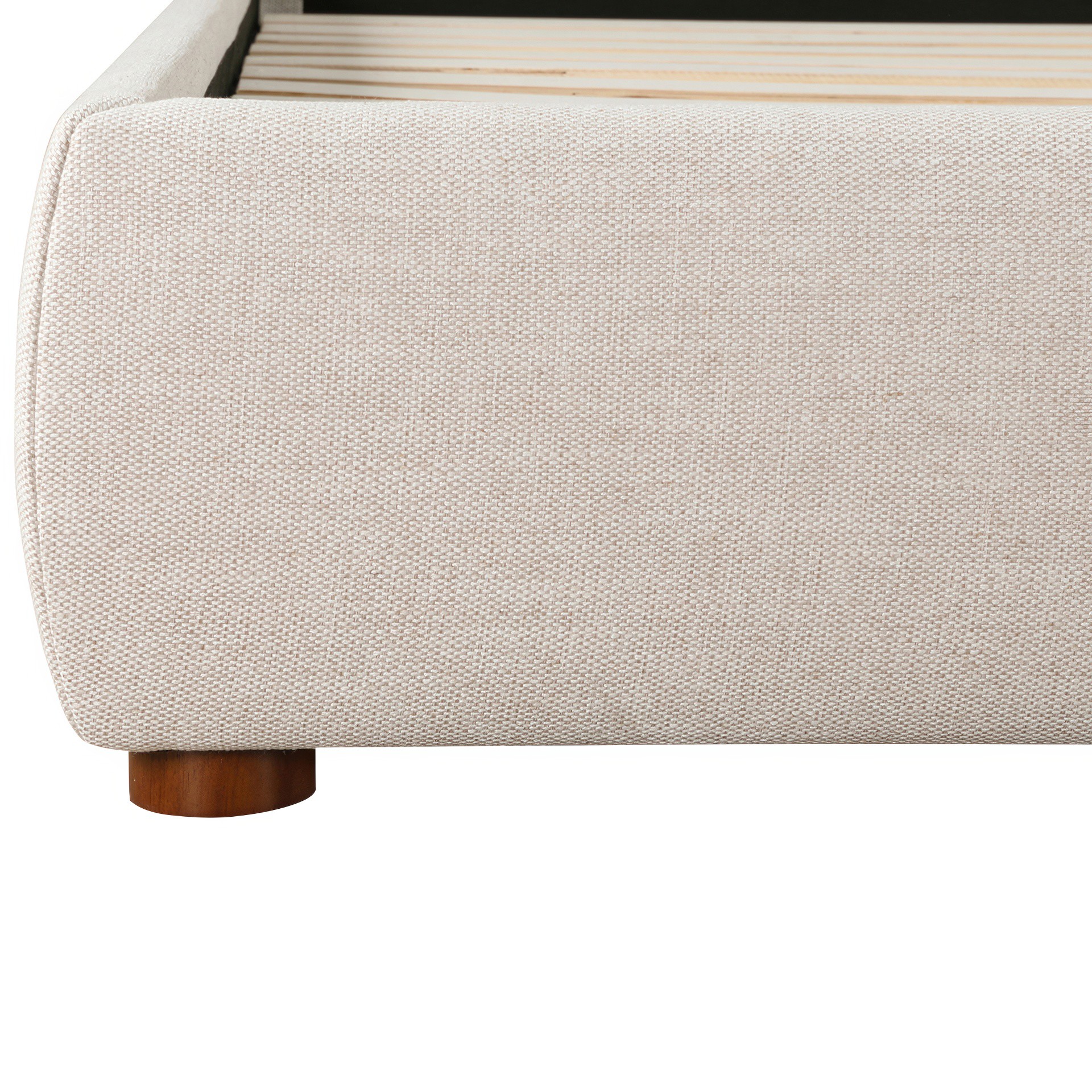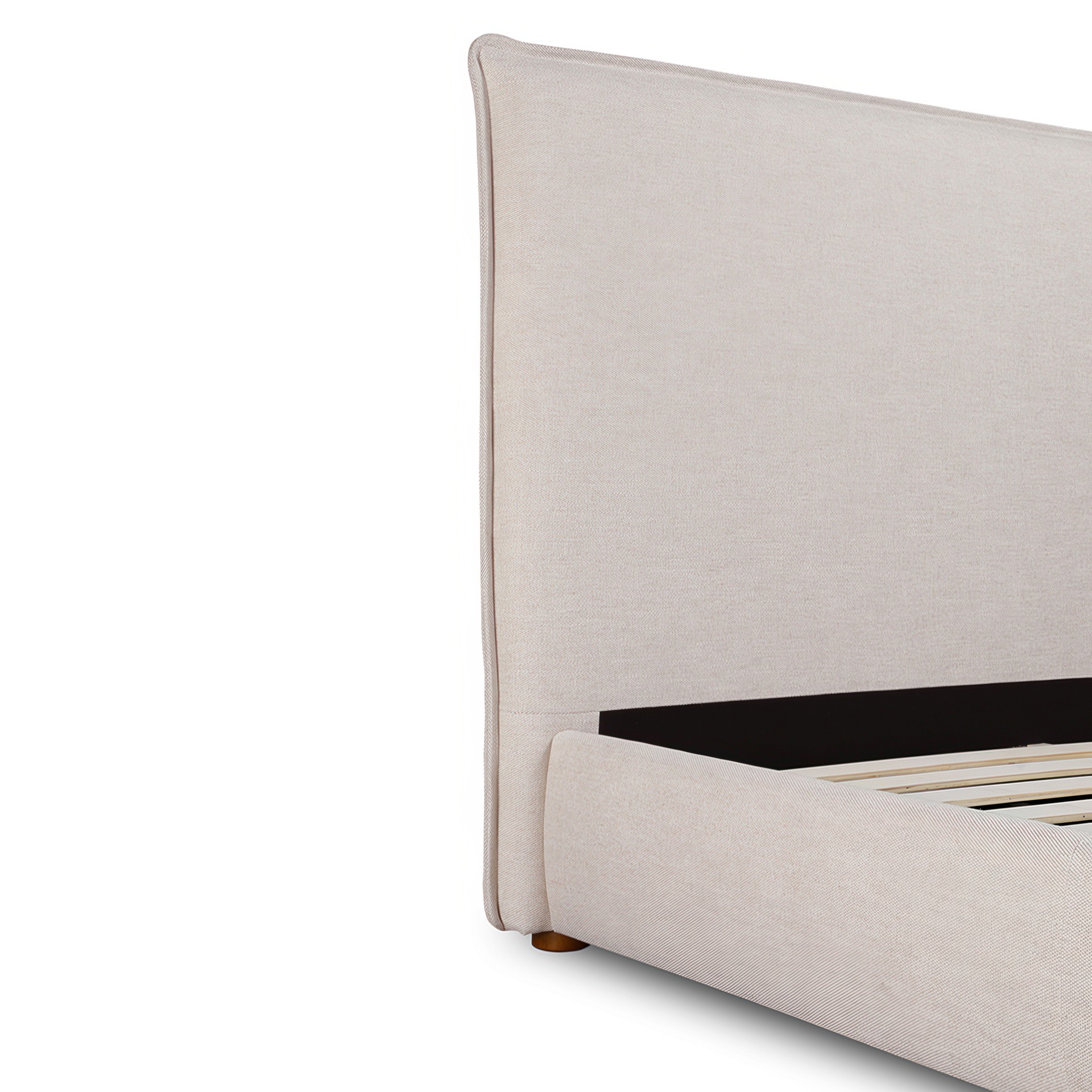 • Soft, polyester linen-blend upholstery with tall, foam-padded headboard