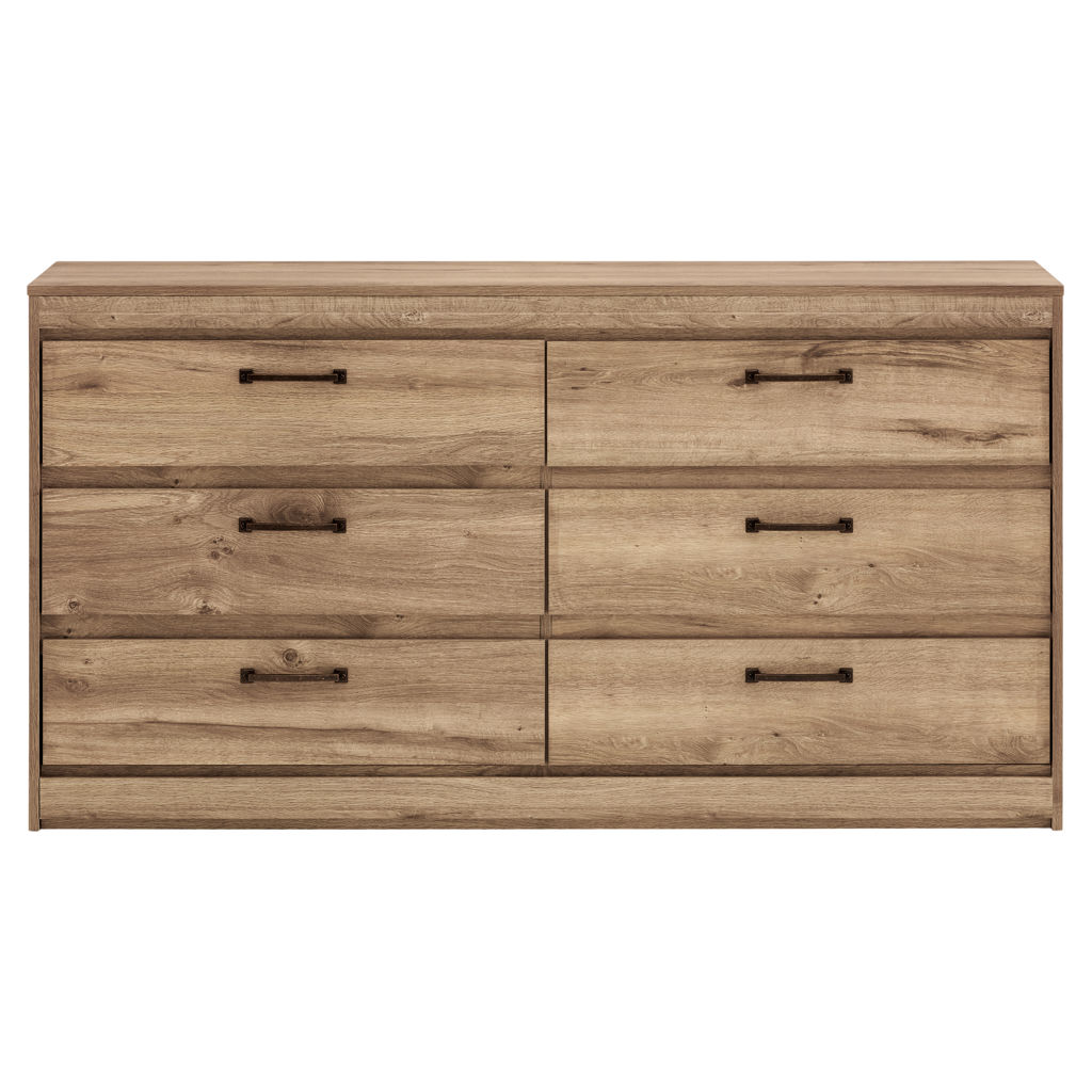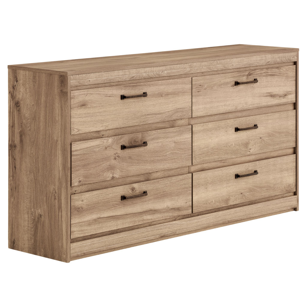 This double dresser provides the storage space you need without compromising on style. Its six spacious drawers let you organize your wardrobe efficiently, while the wood finish adds a warm touch to your bedroom.
