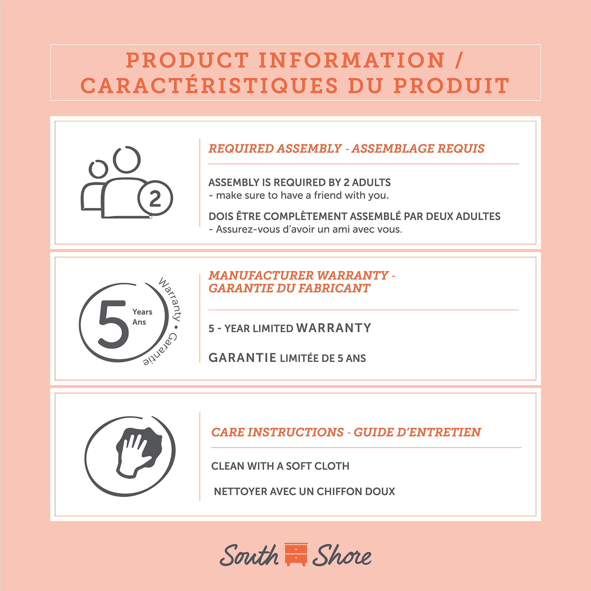 • EASY TO FOLLOW ASSEMBLY INSTRUCTION: All our products have an assembly guide with clear instructions, guiding you through each step. If you have any questions please do not hesitate to contact South Shore Furniture for immediate support. This item is shipped in 1 box, make sure to have a friend with you.