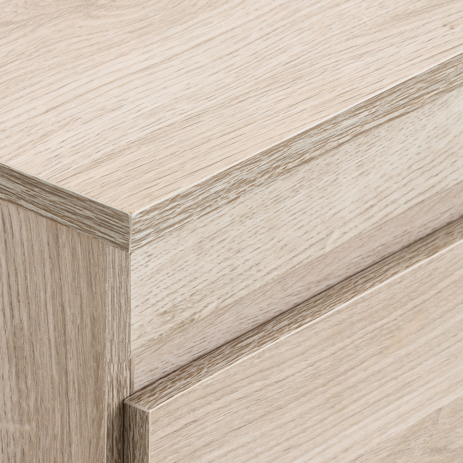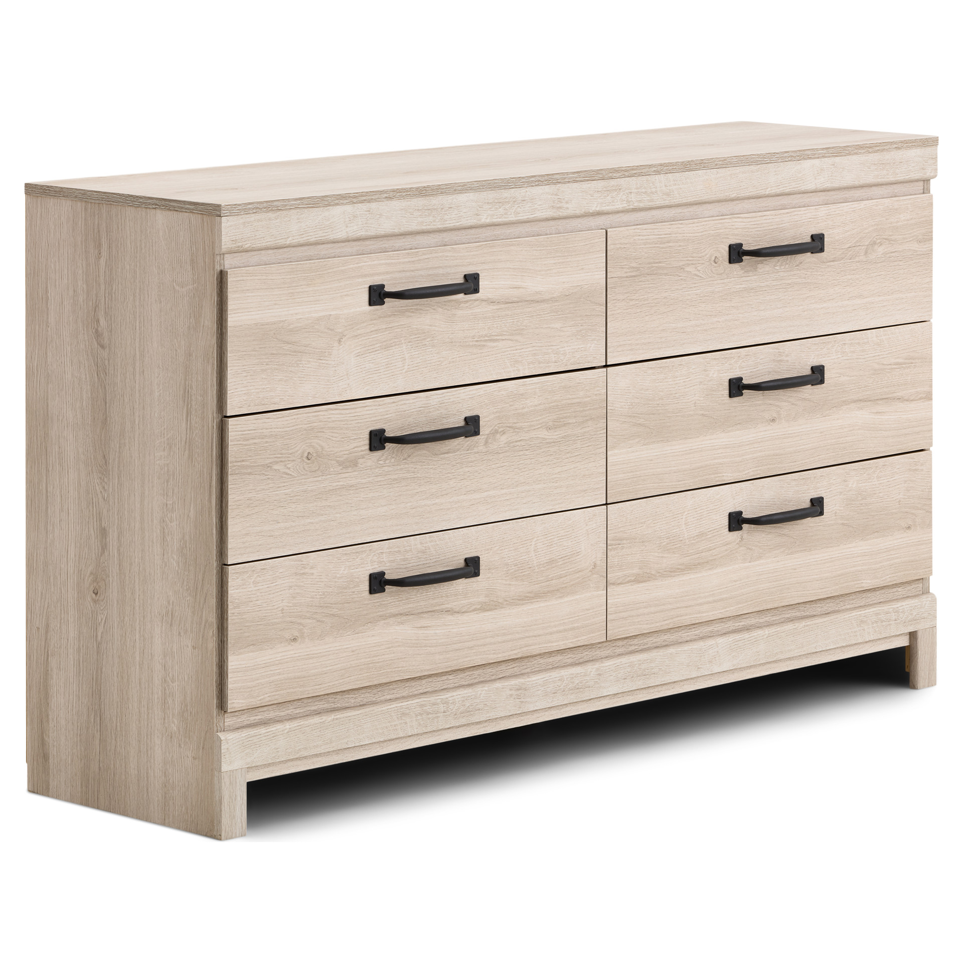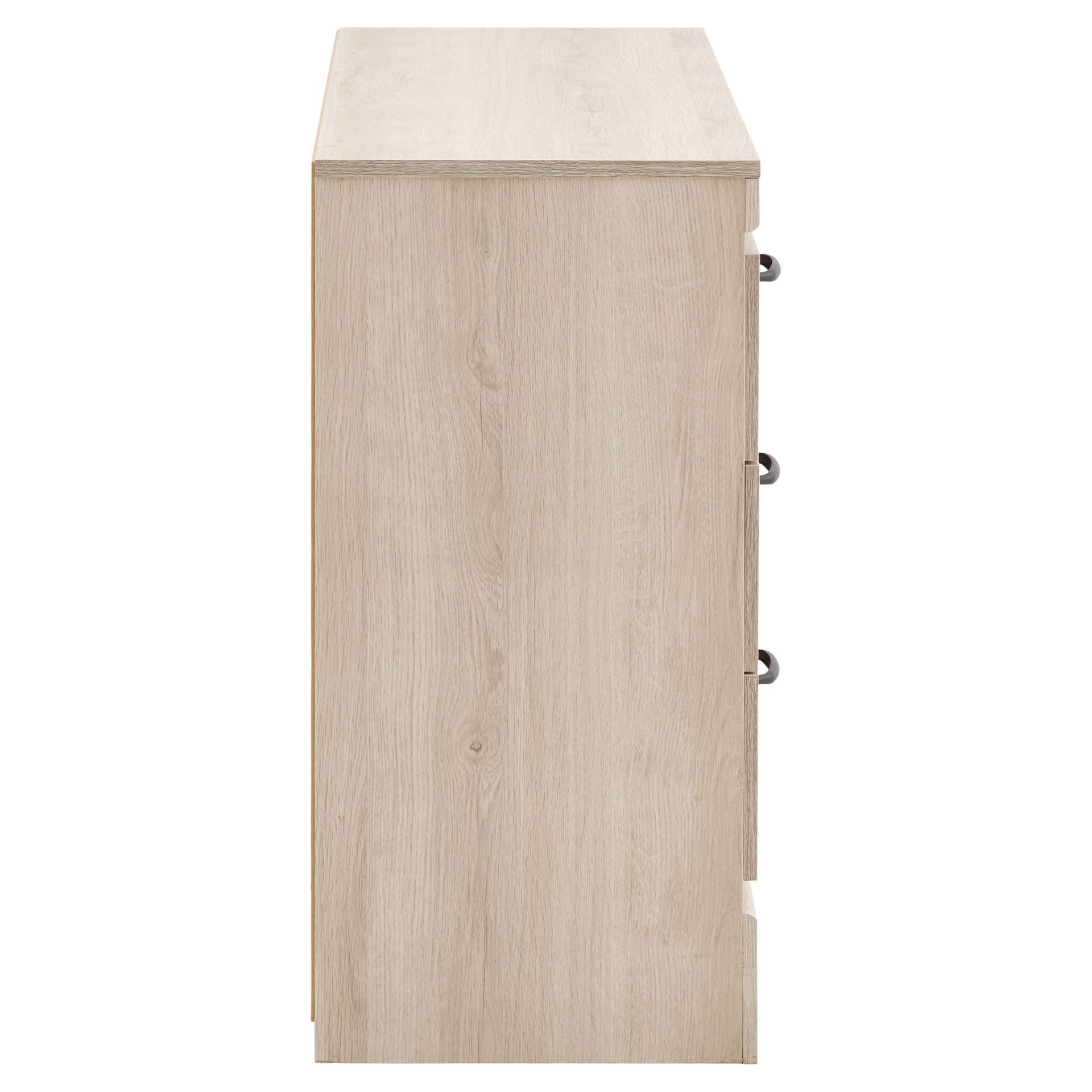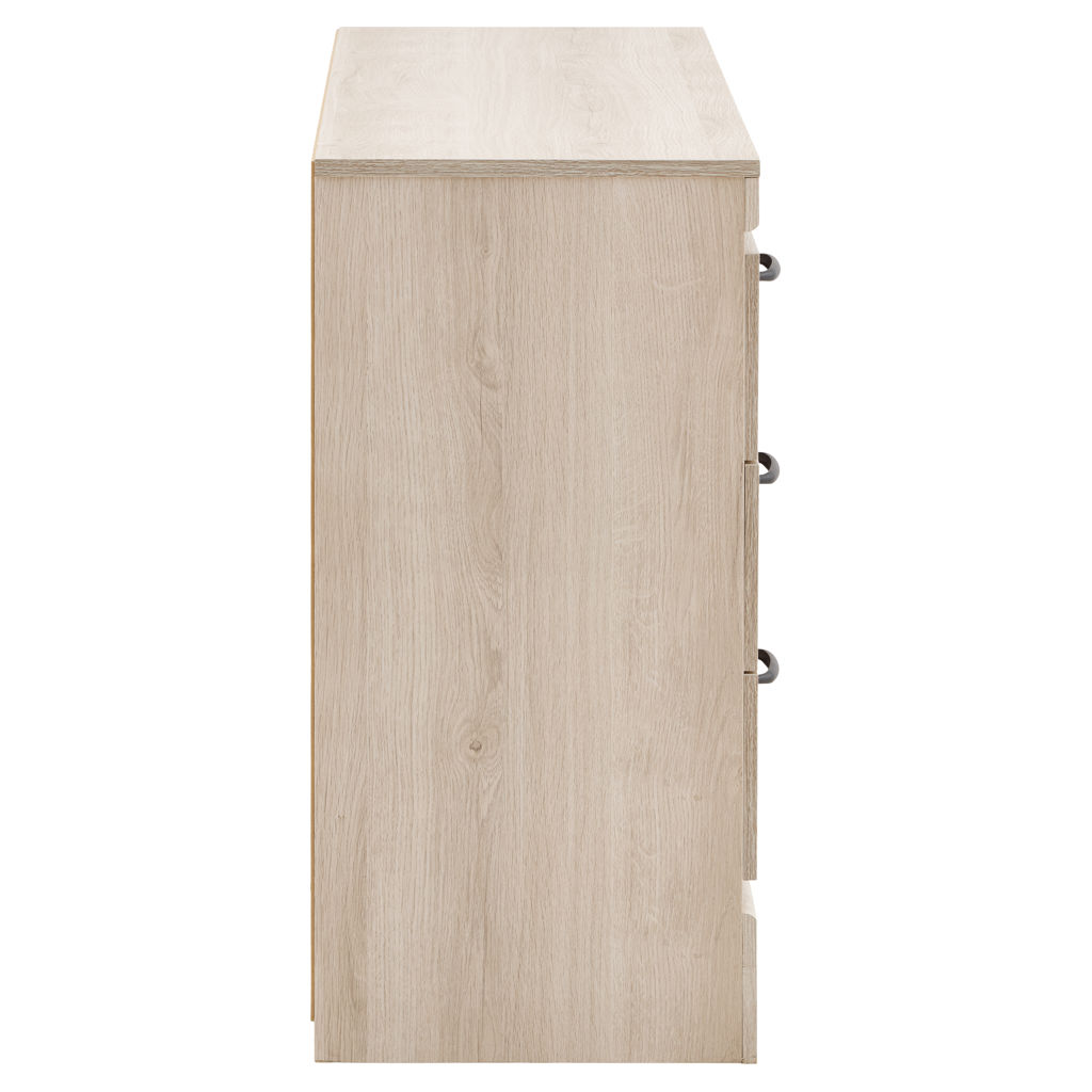 The light wood finish brings brightness and warmth to your space, while the black handles offer a modern, refined contrast. Smooth-gliding drawers ensure comfortable everyday use.