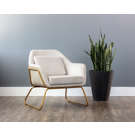 With its clean design and gold-toned frame, the Watts accent chair combines modern elegance with comfort.