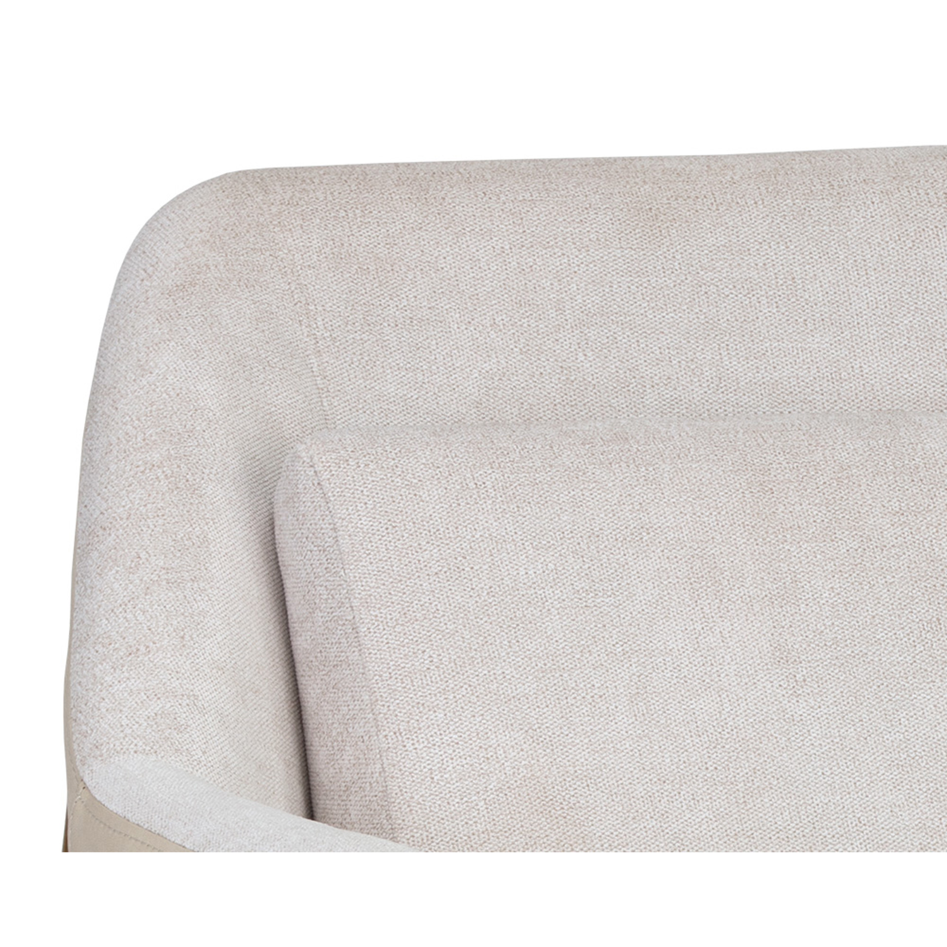 Upholstered in soft, neutral fabric, it blends effortlessly into any décor, while the generously padded seat invites you to relax.