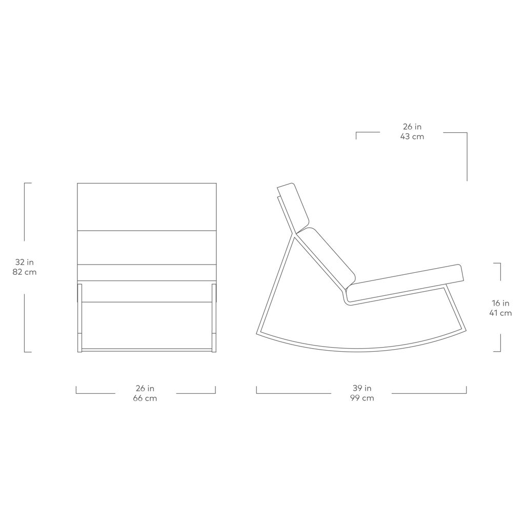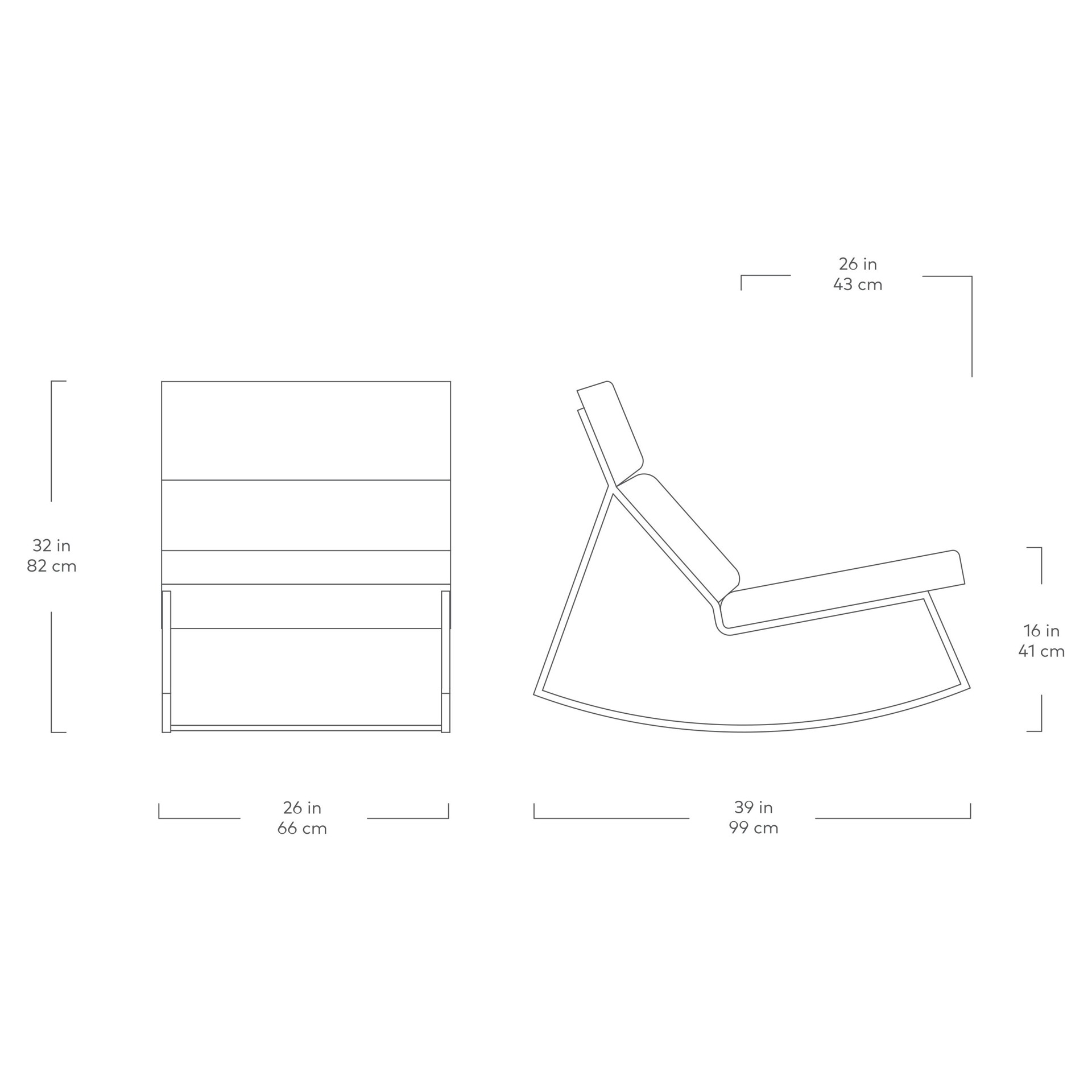 The Gus* version of the perfect modern rocking chair; featuring a powder coated frame with architecturally-styled cushions inspired by airport lounge seating and 70’s car interiors. Constructed with 100% FSC -Certified Wood in support of responsible forest management.