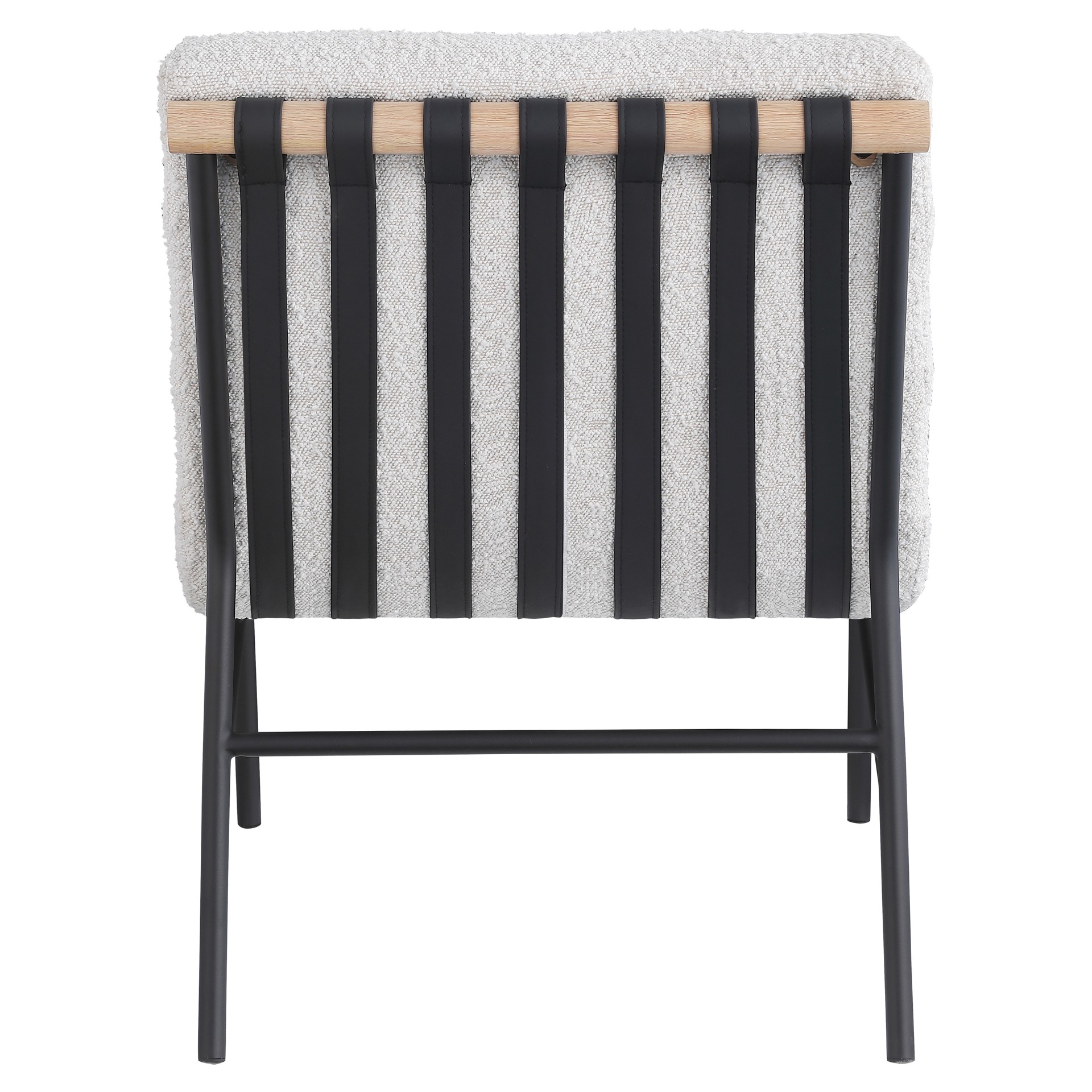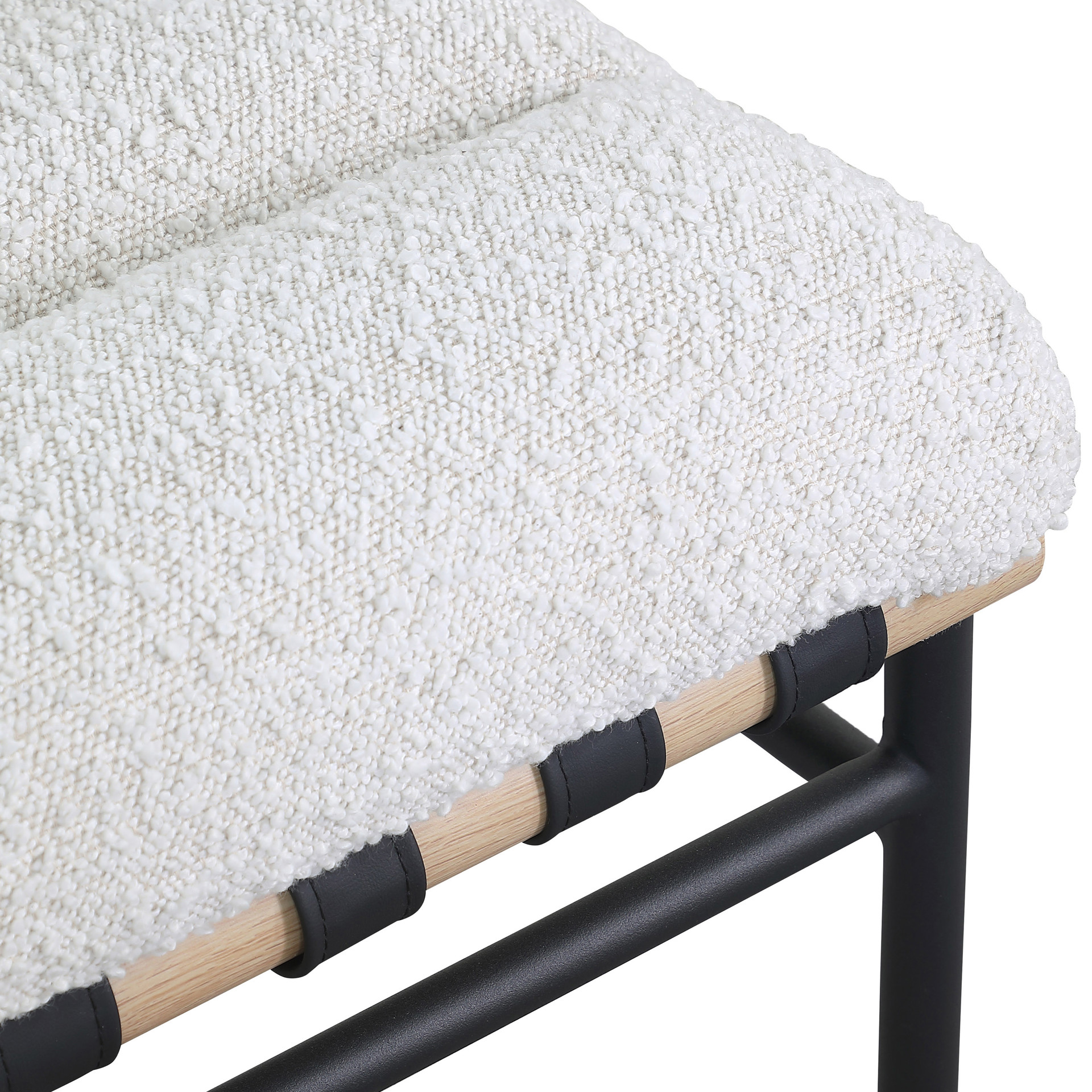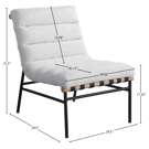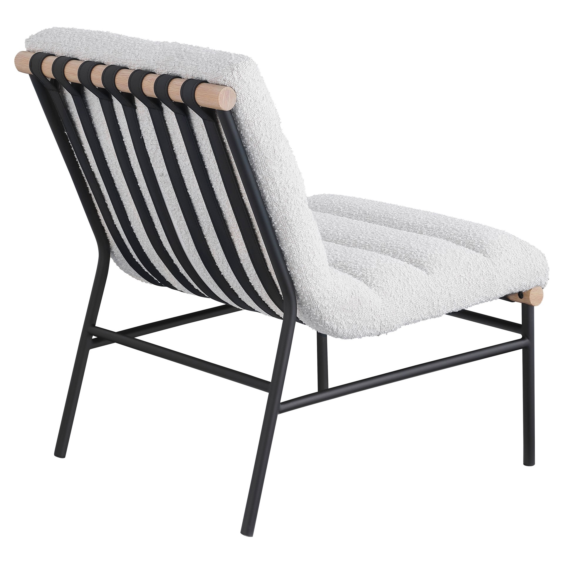 An overstuffed, channel-tufted seat and back cushion make it super comfy and ready for evenings spent relaxing and taking it easy. An all-metal frame provides support for durable use, and a white oak veneer metal dowel provides interesting contrast to draw the eye instantly from all angles.