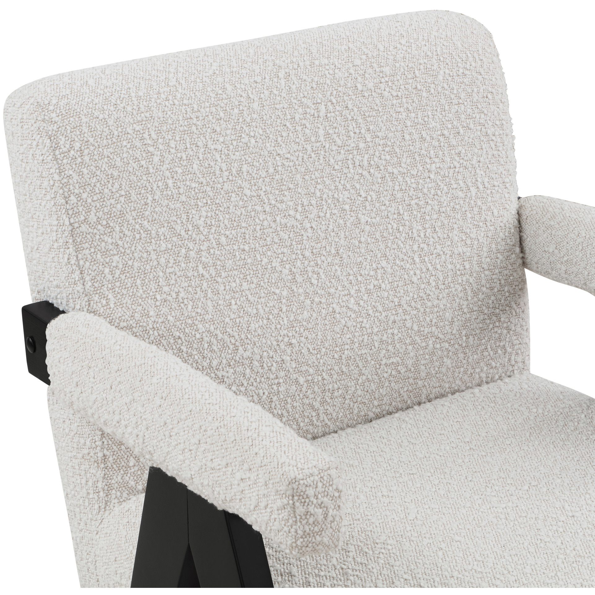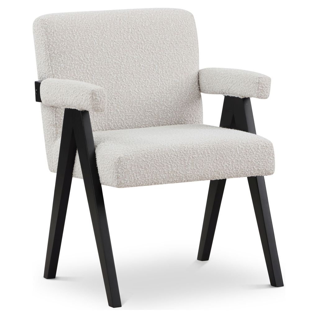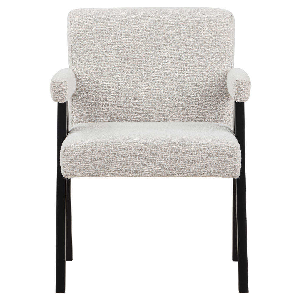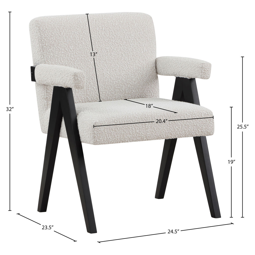 Add a touch of modern comfort to your space with this Woodloch boucle fabric accent chair. Upholstered in rich cream boucle fabric on the seat, back, and arms, this chair features a black finish solid wood frame for a beautiful contrast that draws the eye in an instant. Add this handsome seat to your living room or elsewhere for a boost of contemporary panache.