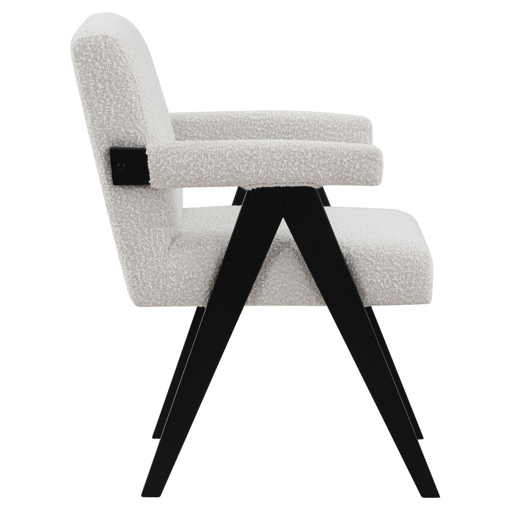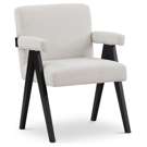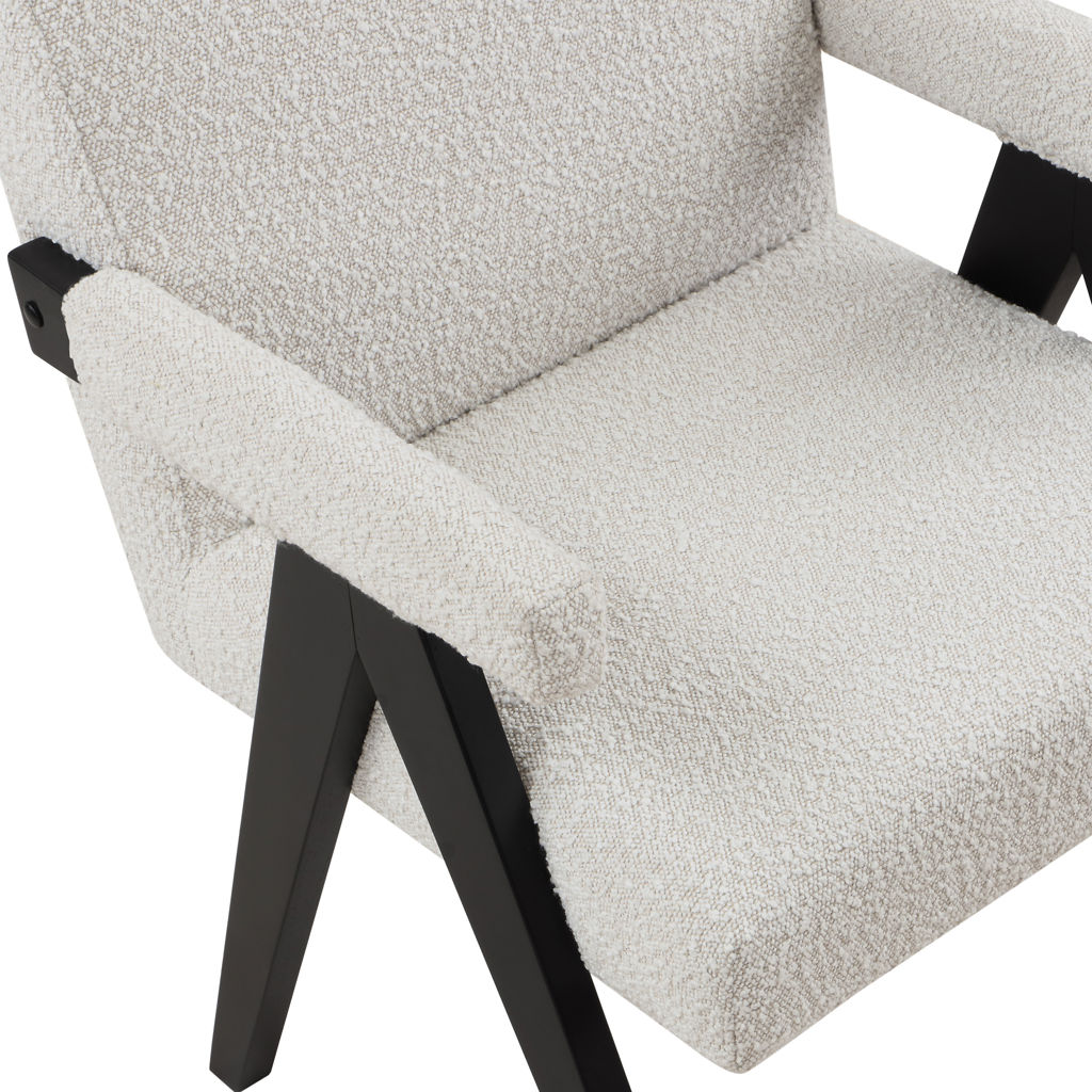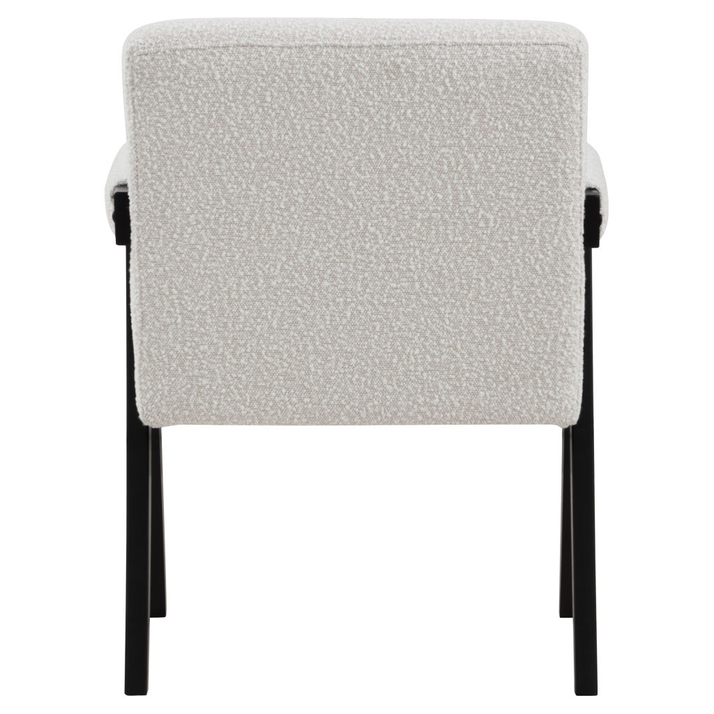 Add a touch of modern comfort to your space with this Woodloch boucle fabric accent chair. Upholstered in rich cream boucle fabric on the seat, back, and arms, this chair features a black finish solid wood frame for a beautiful contrast that draws the eye in an instant. Add this handsome seat to your living room or elsewhere for a boost of contemporary panache.