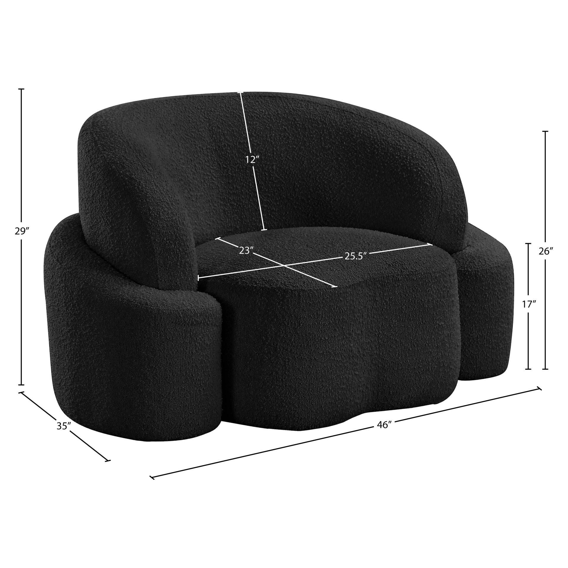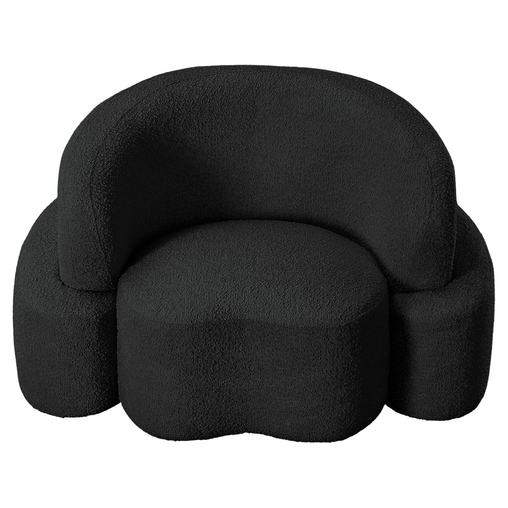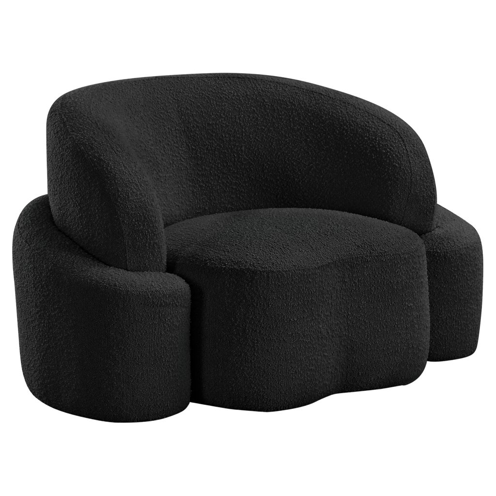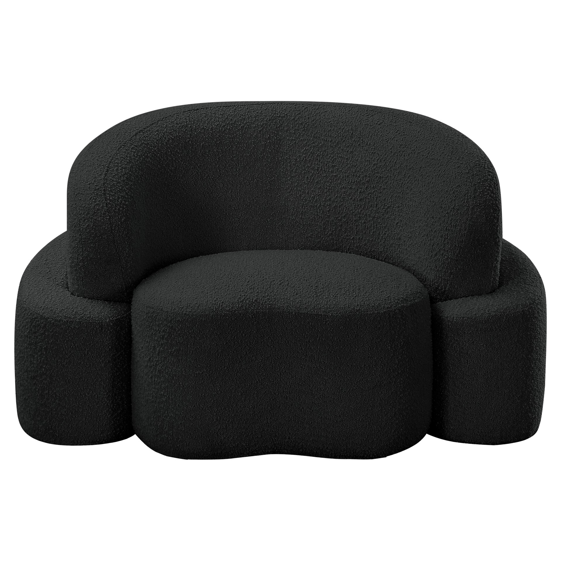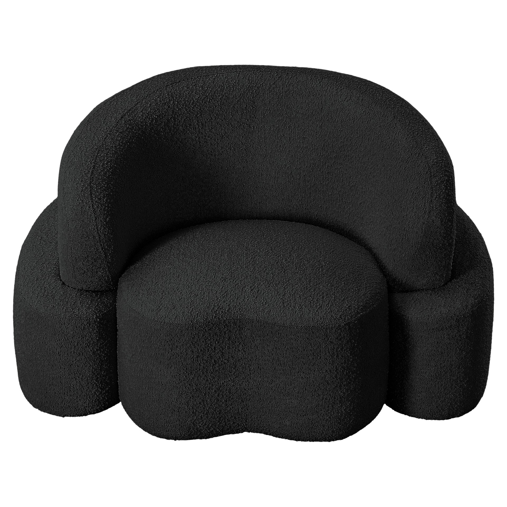 Discover the perfect balance of comfort and sophistication with this armchair’s soft, rounded lines. Its deep black fabric upholstery blends seamlessly with any interior, from classic to contemporary.
