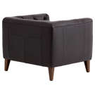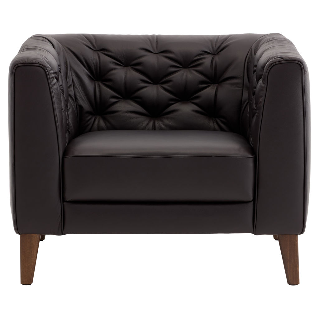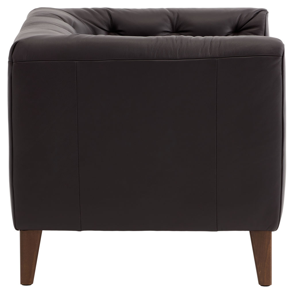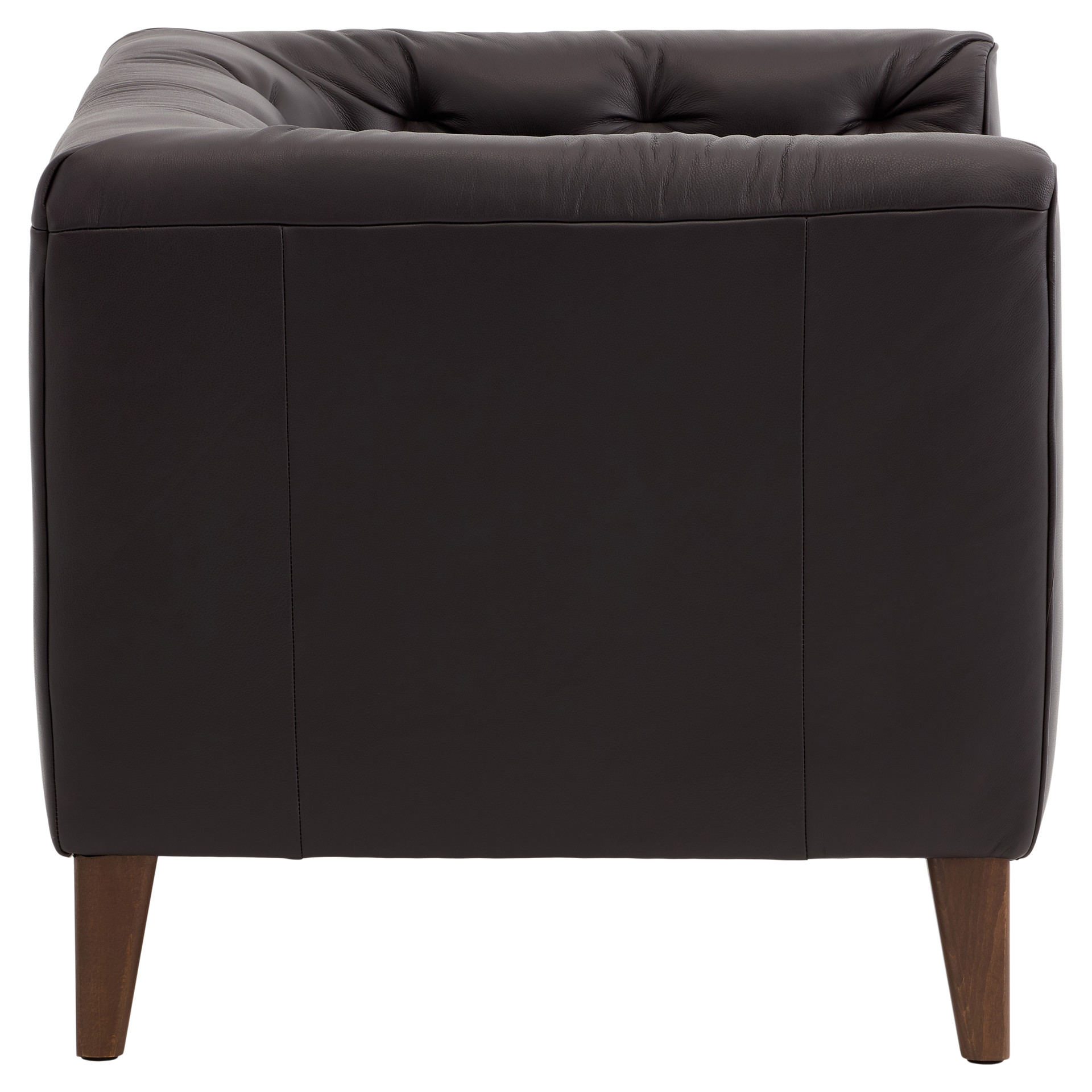 The refined tufting on the backrest creates a play of light and shadow that highlights the richness of the leather. Supported by warm-toned wooden legs, this armchair quickly becomes the centerpiece of your relaxation space.