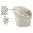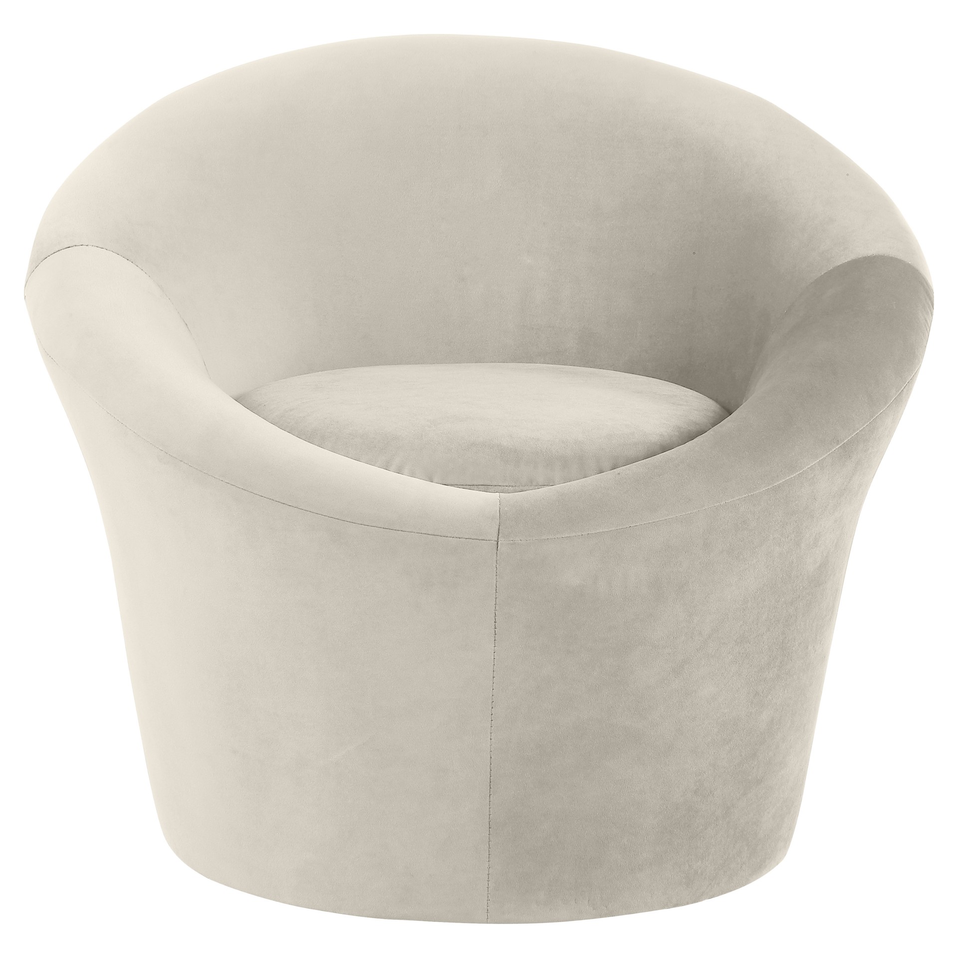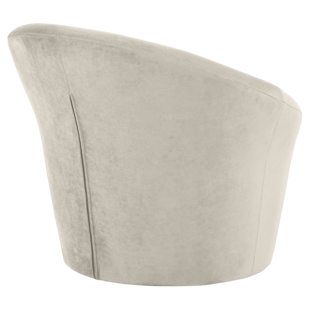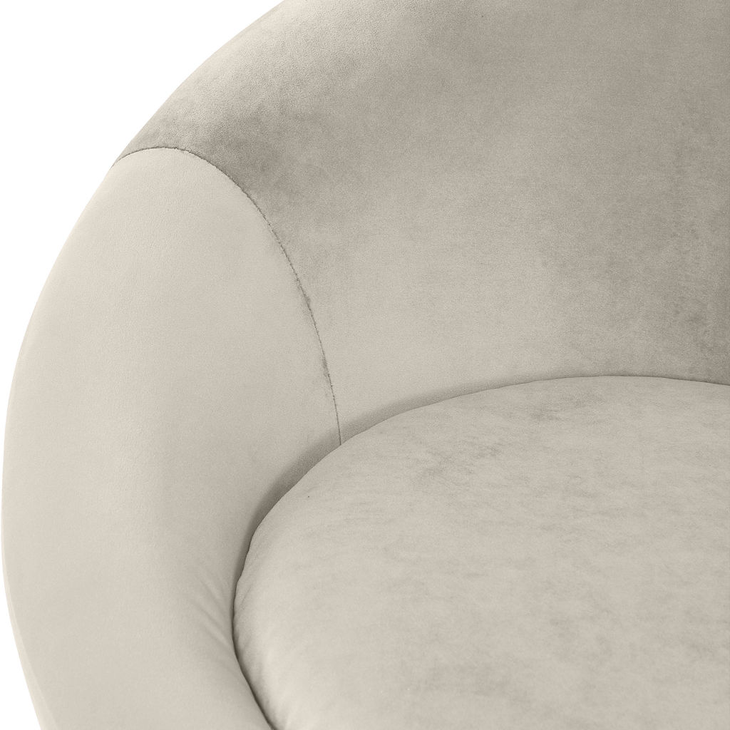 Compact yet generously proportioned, this accent chair fits seamlessly in a living room, bedroom, or office. Its soft, curved lines and rounded base create a sophisticated focal point that draws the eye without overwhelming the space.