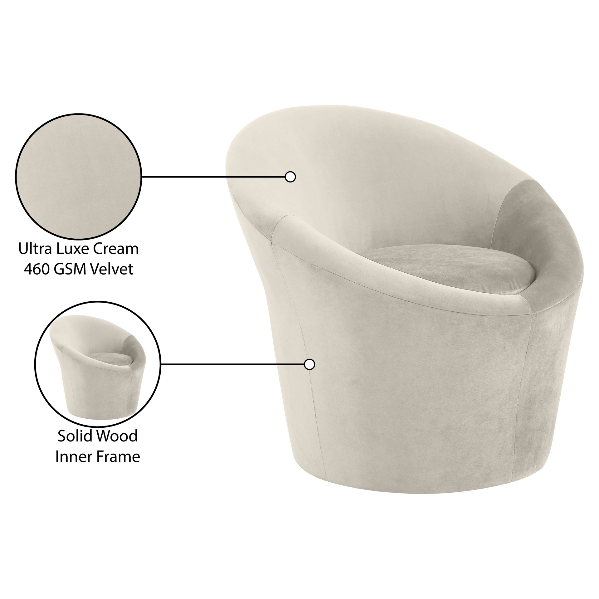 Tristan Velvet Accent Chair Meridian Furniture 33015CREAM