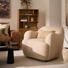 Bring welcoming comfort to your space with this accent chair featuring rounded shapes and soft upholstery.