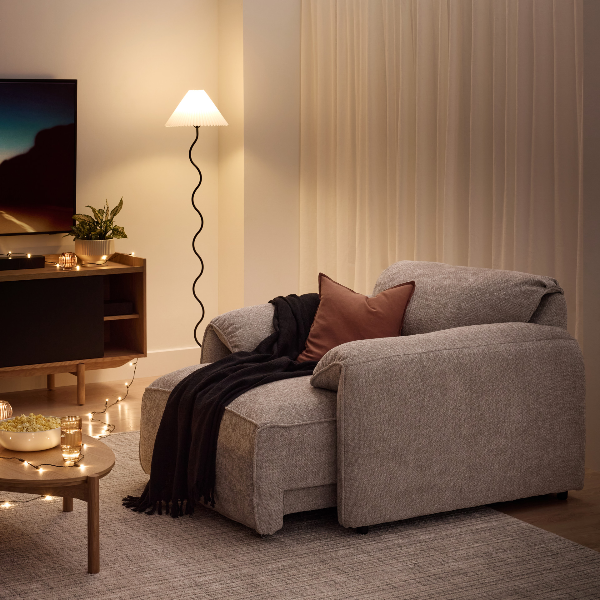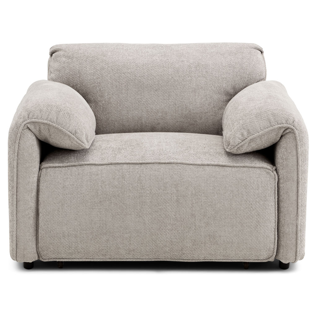 The heathered grey fabric finish adds a subtle touch of elegance that blends effortlessly with your décor. Generously padded cushions and plush filling wrap you in a cocoon of comfort, ideal for watching a movie, reading, or simply unwinding after a long day.