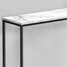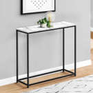 Bring an extra dimension to your entryway with this simple accent console. The spacious white marble-look laminated surface will bring your decorative pieces to life or use it as a convenient spot to put down your keys, phone, or mail.