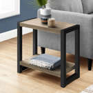 Here's an accent table that holds its own. With its thick tabletop, bottom shelf, and black metal legs, this robust side table stands strong next to a sofa, chair, or bed.