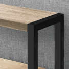Finished on all sides, it can be positioned in any direction to fit both narrow and wide spaces. The two tiers in a dark taupe wood-look finish with a wood-grain texture have ample surfaces to display items in your living room or bedroom.