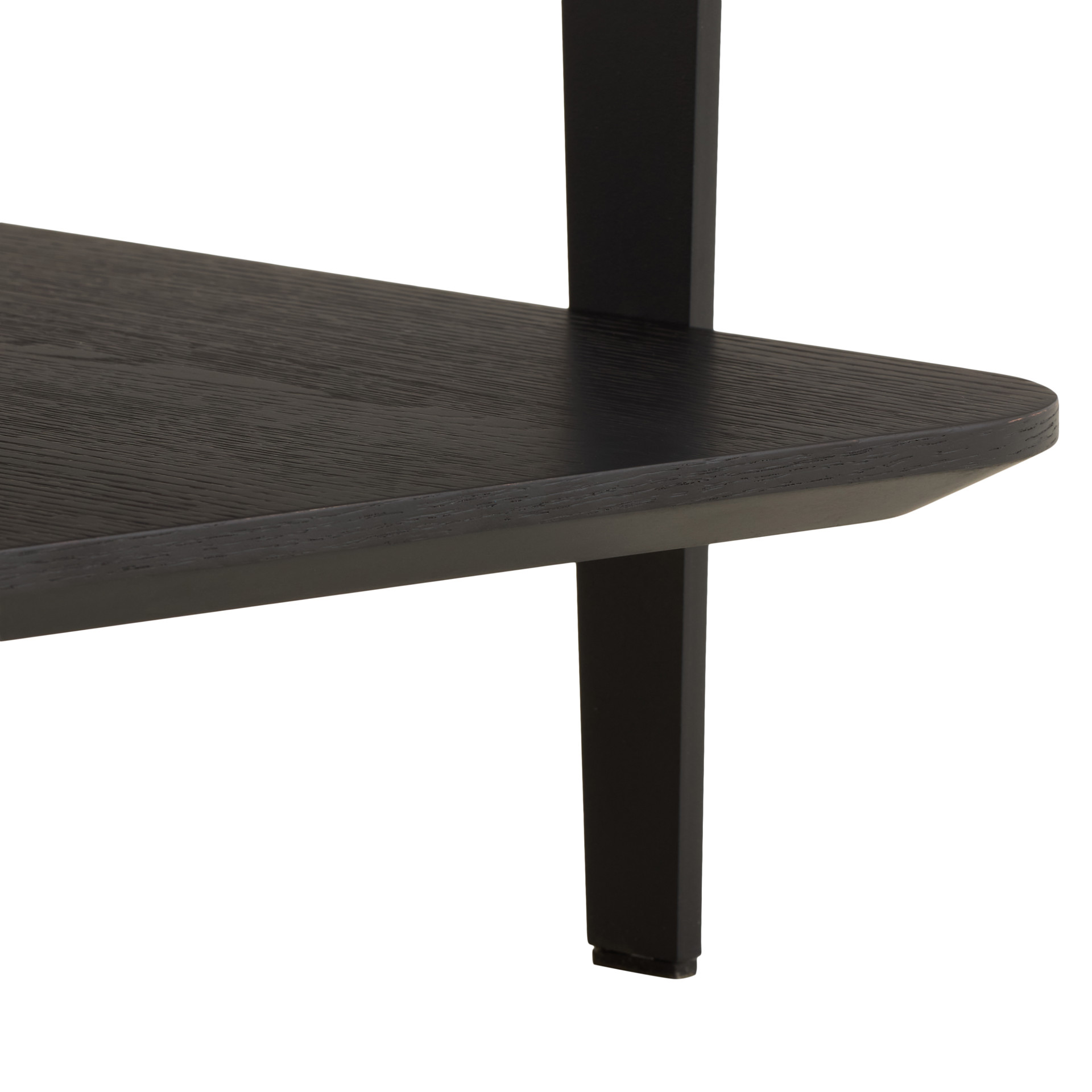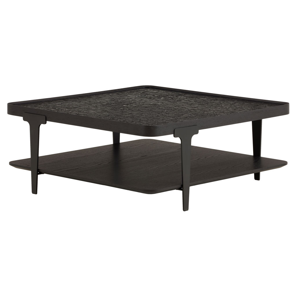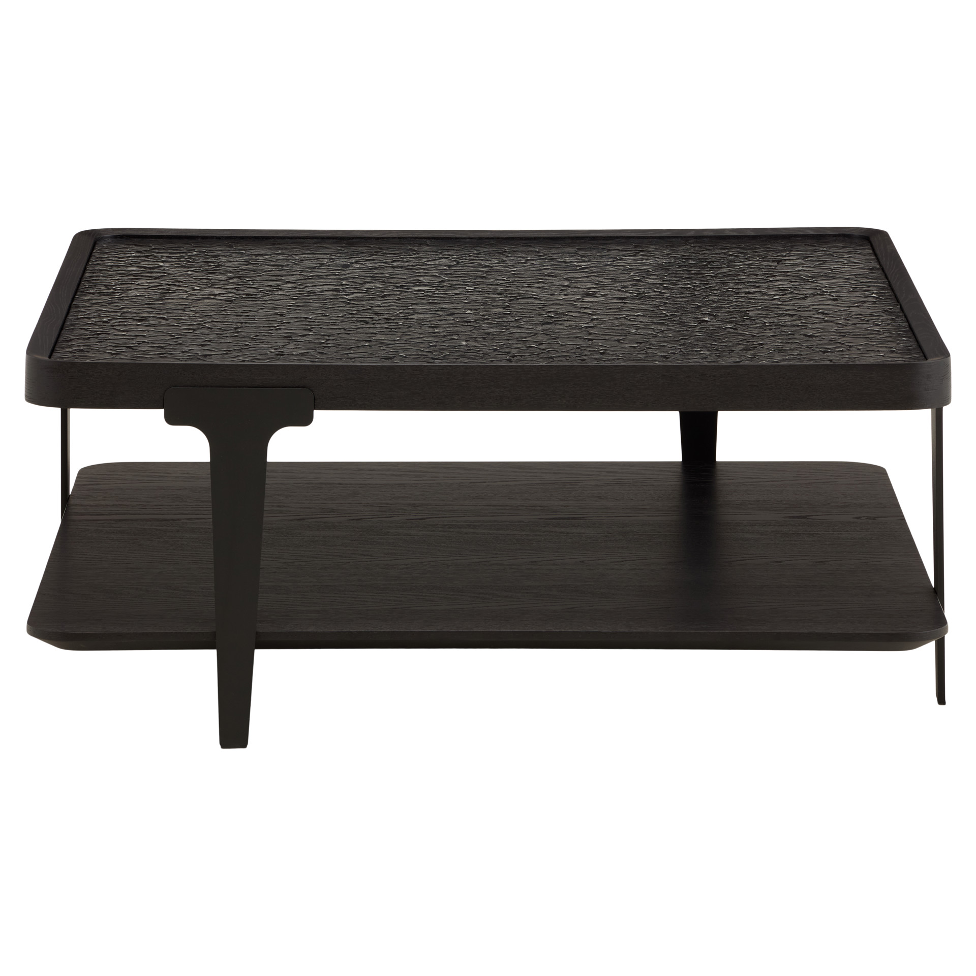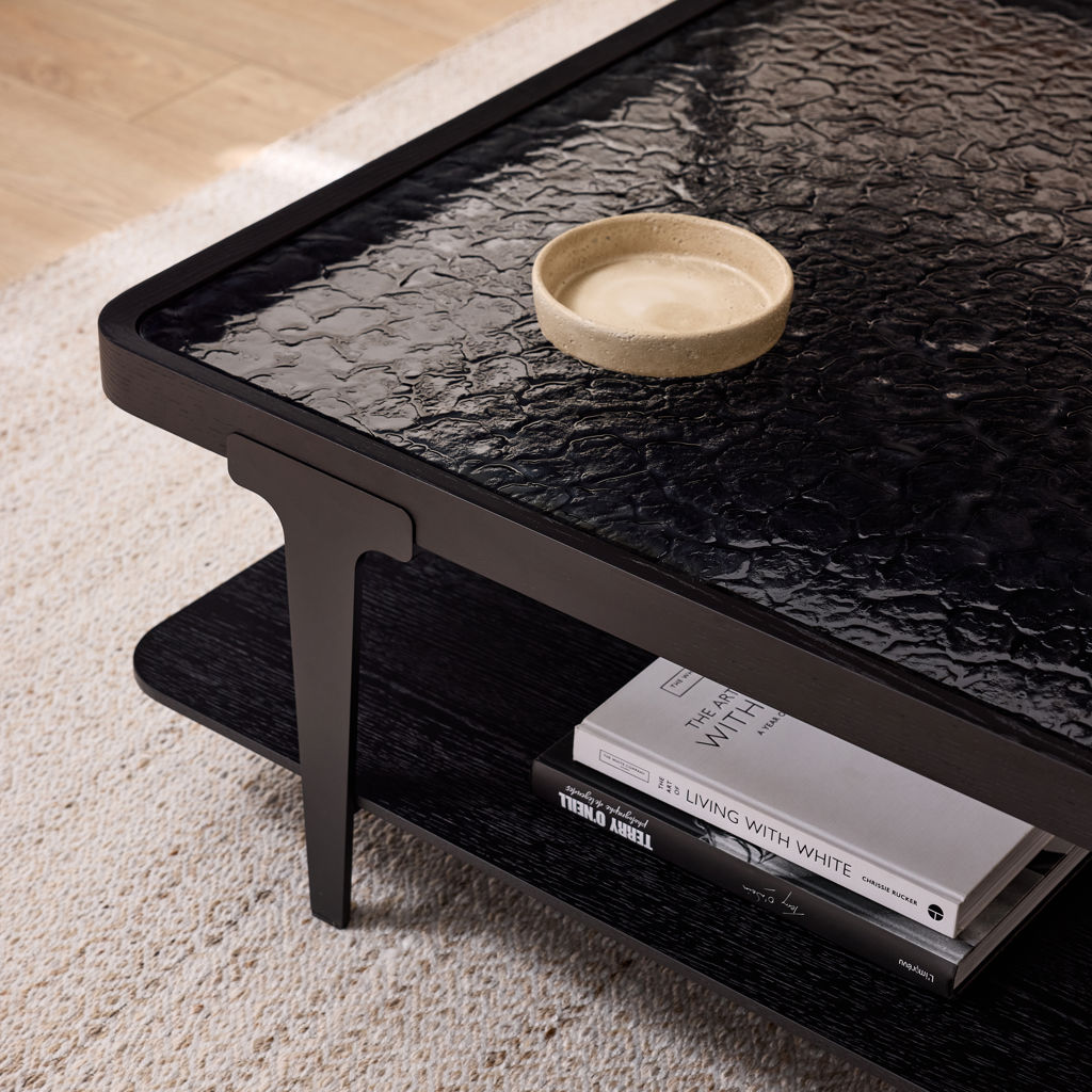 The solid wood frame is elegantly complemented by smoked glass, subtly revealing the refined natural wood veneer beneath.
