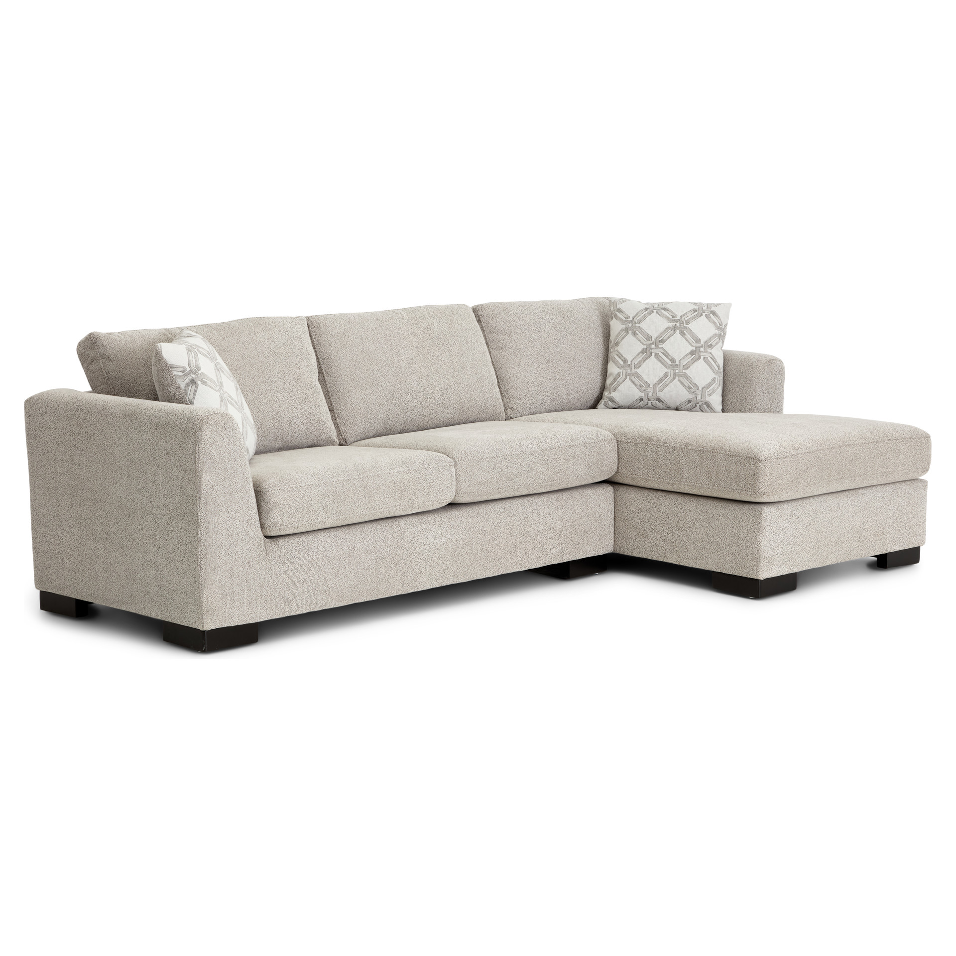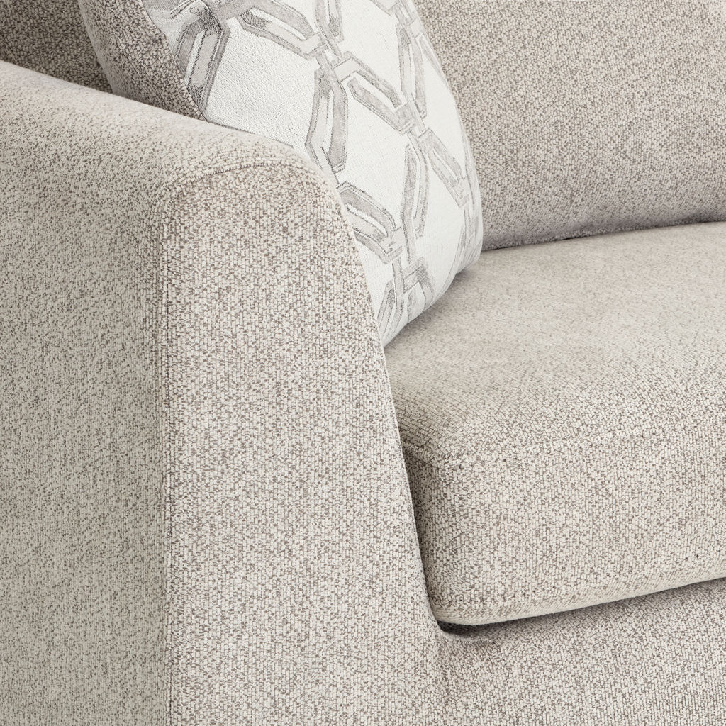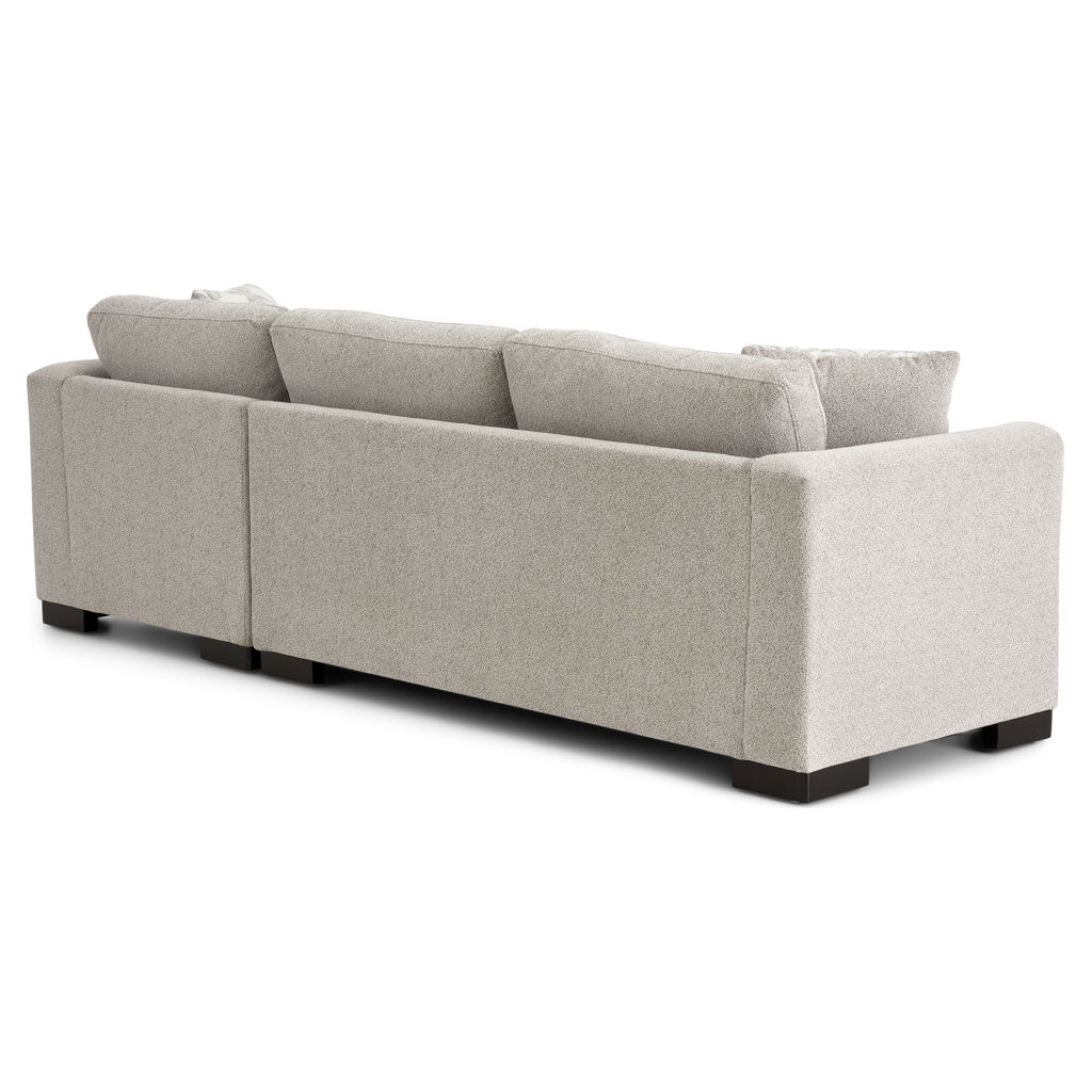 Transform your living room into a true haven of comfort with this stunning sectional. Its soft-to-the-touch fabric and neutral tone blend seamlessly with any décor, creating a warm and inviting atmosphere.