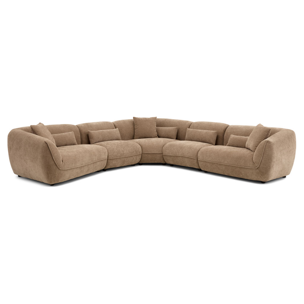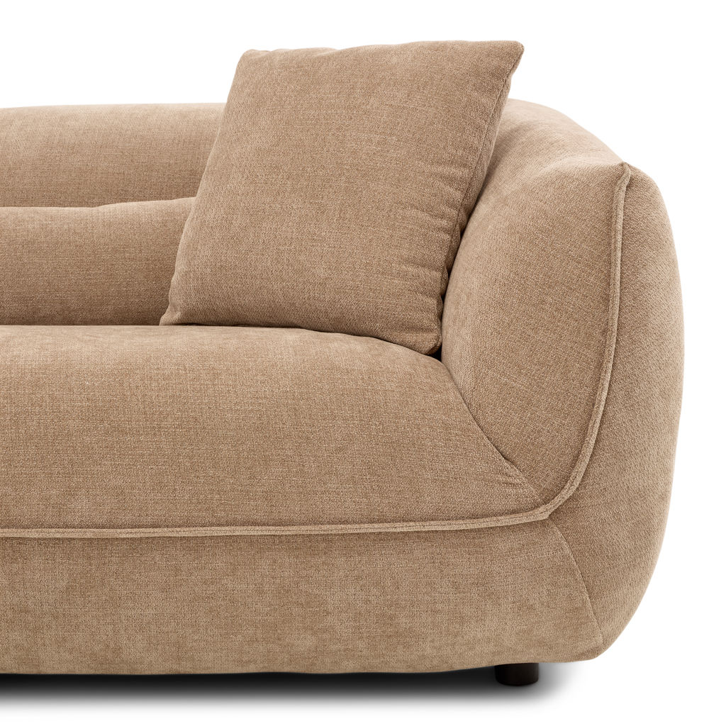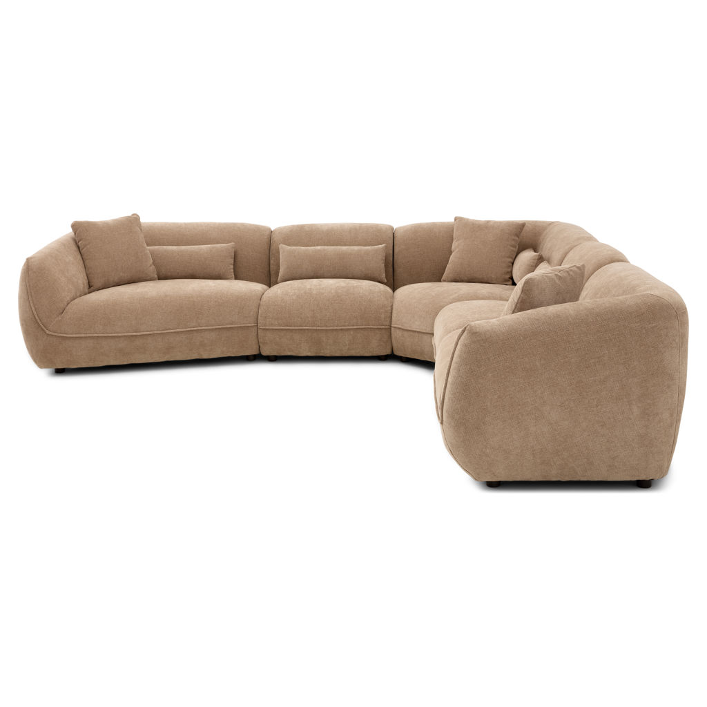 Its rounded lines and velvety fabric upholstery in warm tones create a constant invitation to unwind. The generous L-shaped configuration seats up to 8 people, perfect for large families or those who love entertaining. Thick, plush cushions combined with wraparound armrests provide optimal support for hours of relaxation.