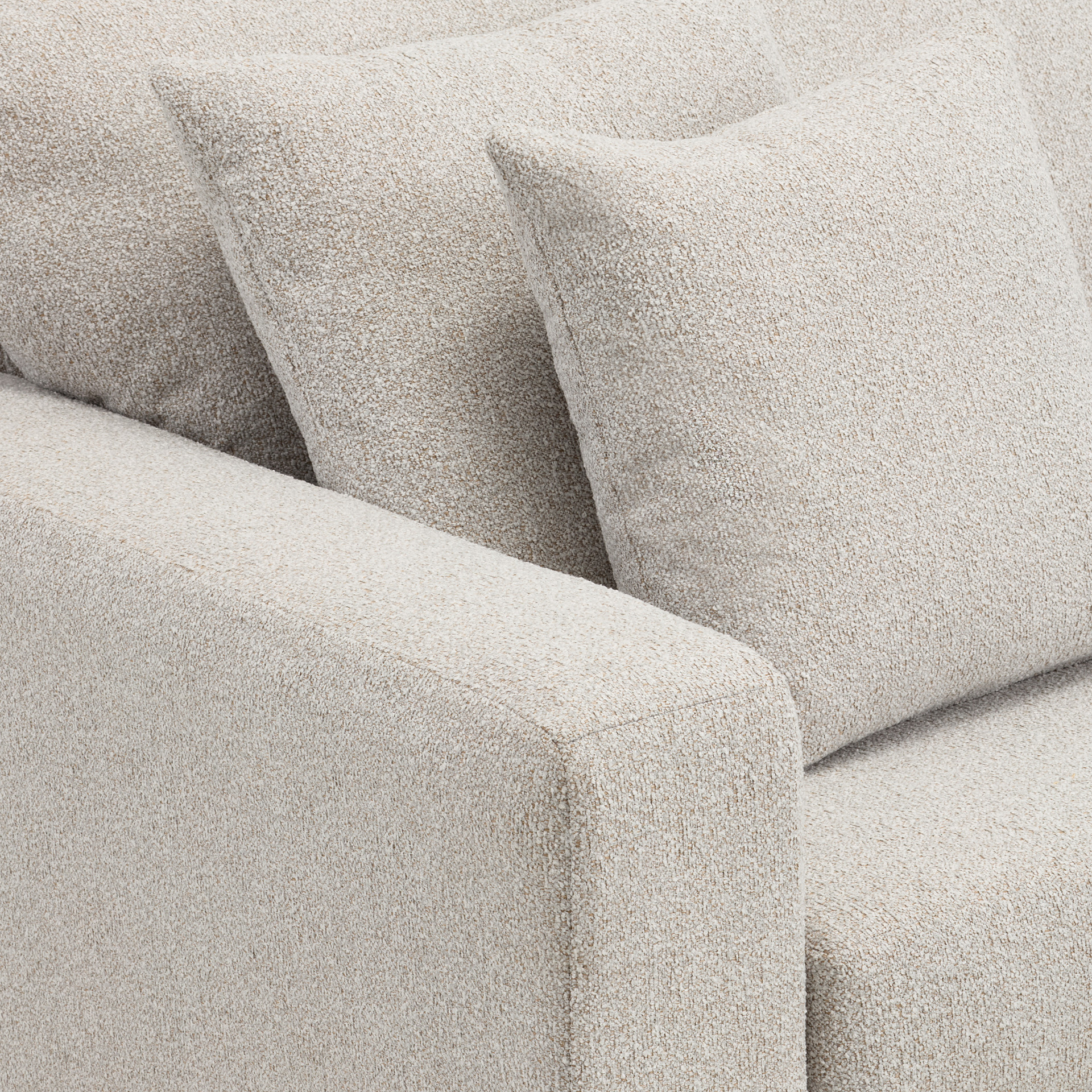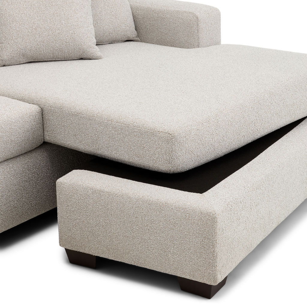 Bring a touch of elegance and comfort to your space with this beautiful sofa with chaise longue in beige bouclé fabric.