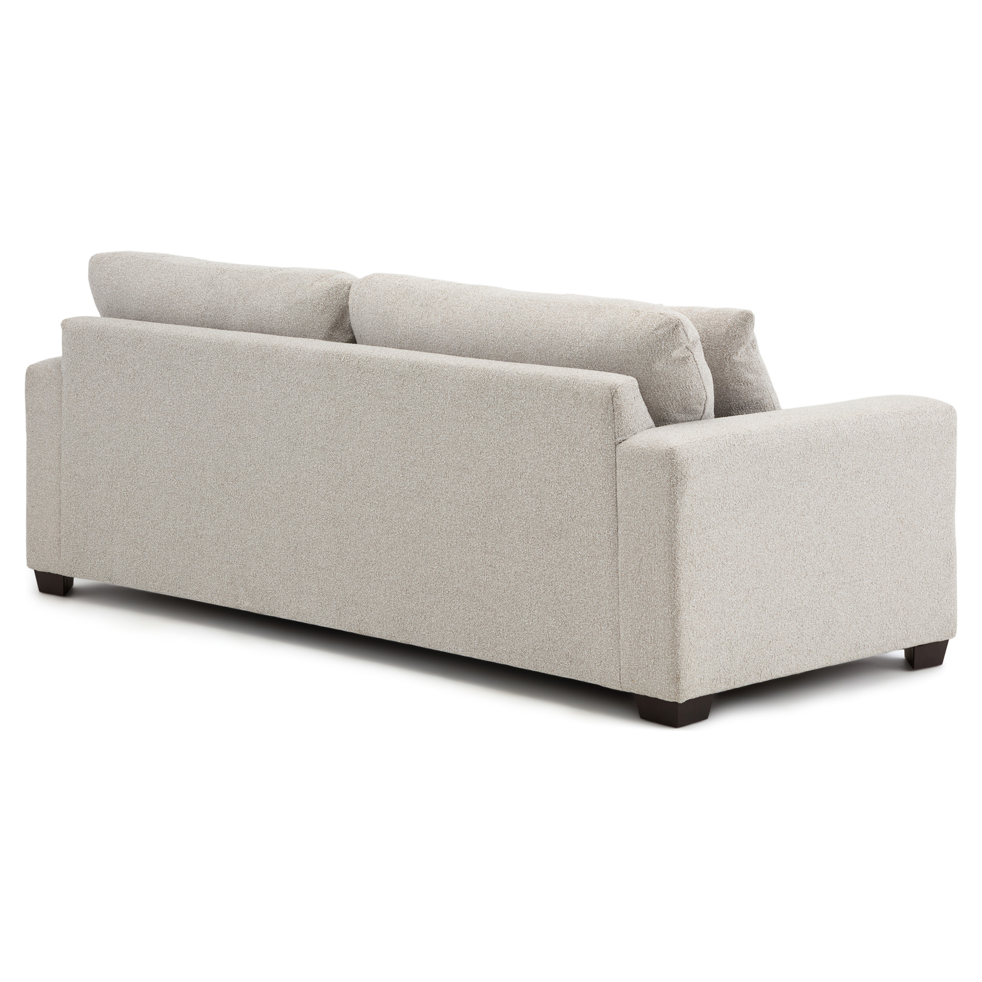 The sofa is accompanied by four matching decorative cushions, for a look that's both warm and inviting.