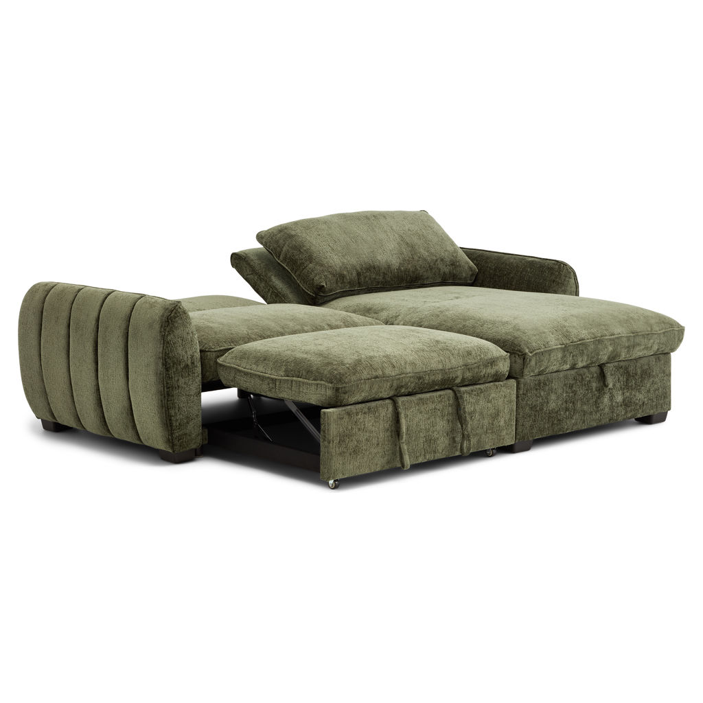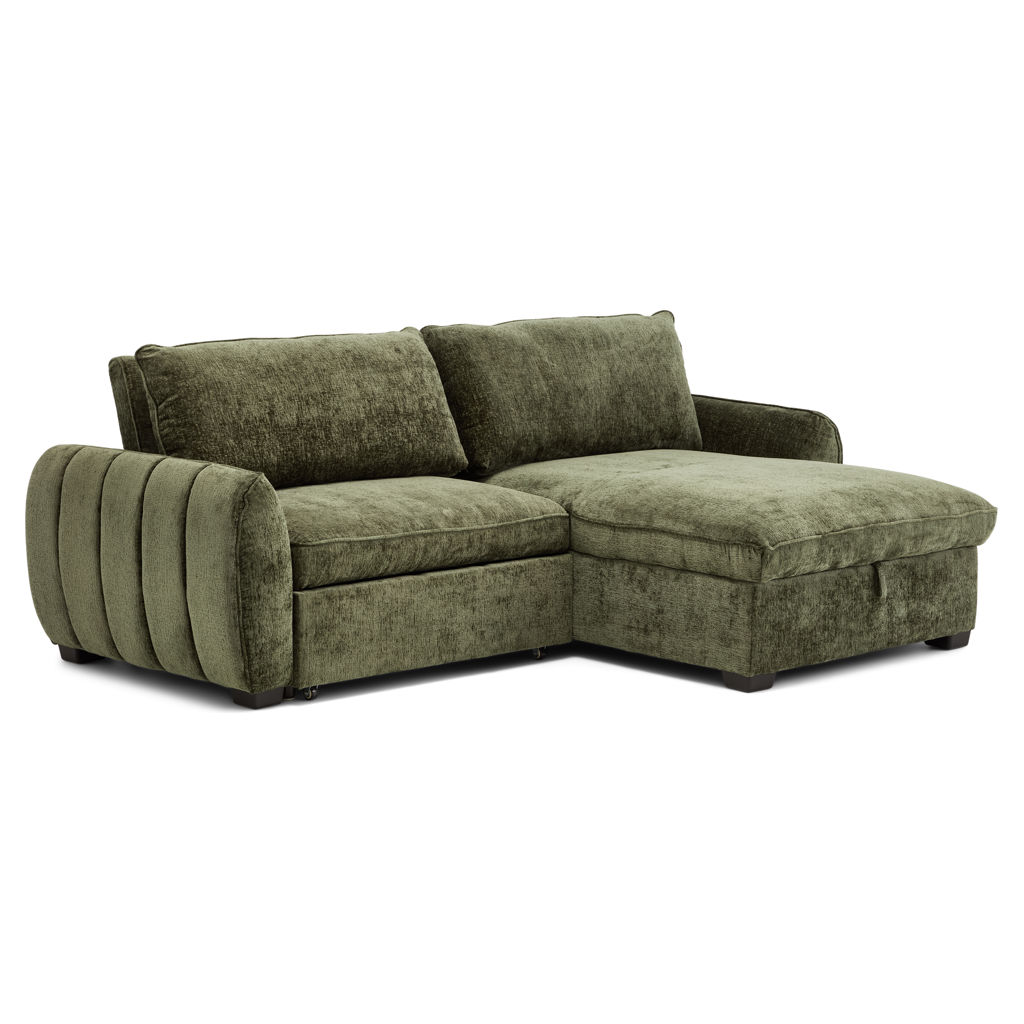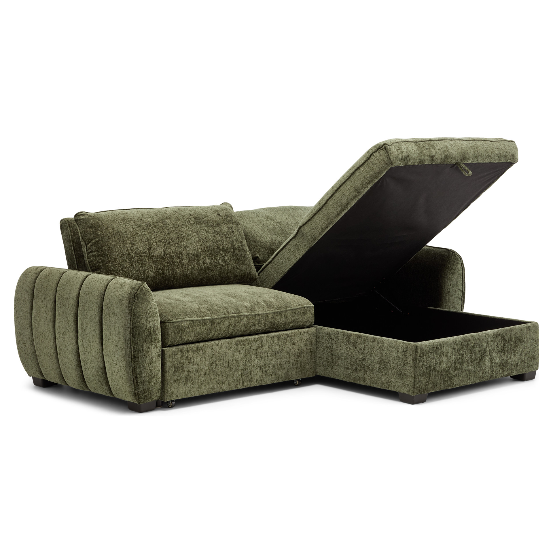 Discover the perfect blend of elegance and versatility with this L-shaped sofa that converts into a convenient sleeper. Its sophisticated olive-green hue and multiple features, including built-in storage in the chaise, make it an ideal solution for maximizing your living space. The Tregenna sleeper sofa is perfect for small spaces or families who love to entertain.