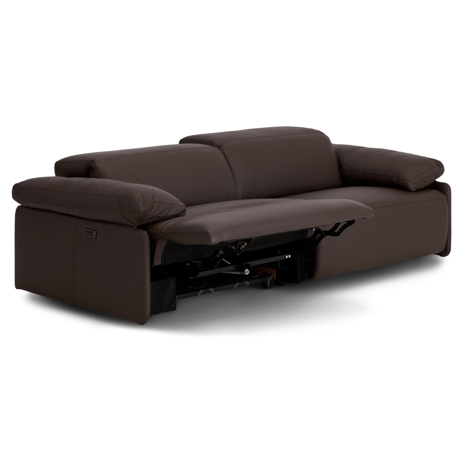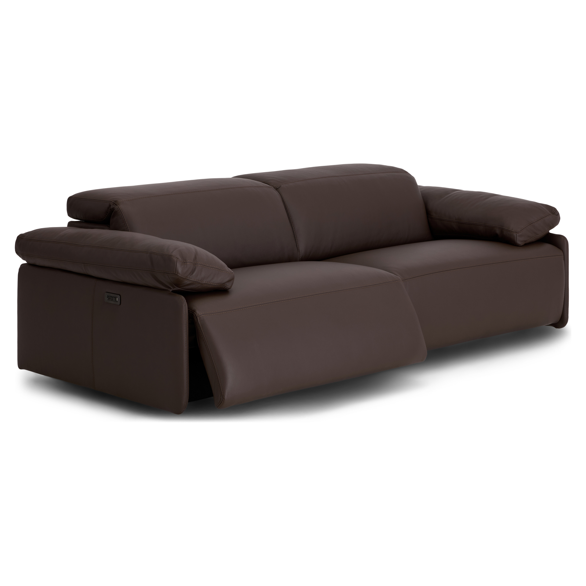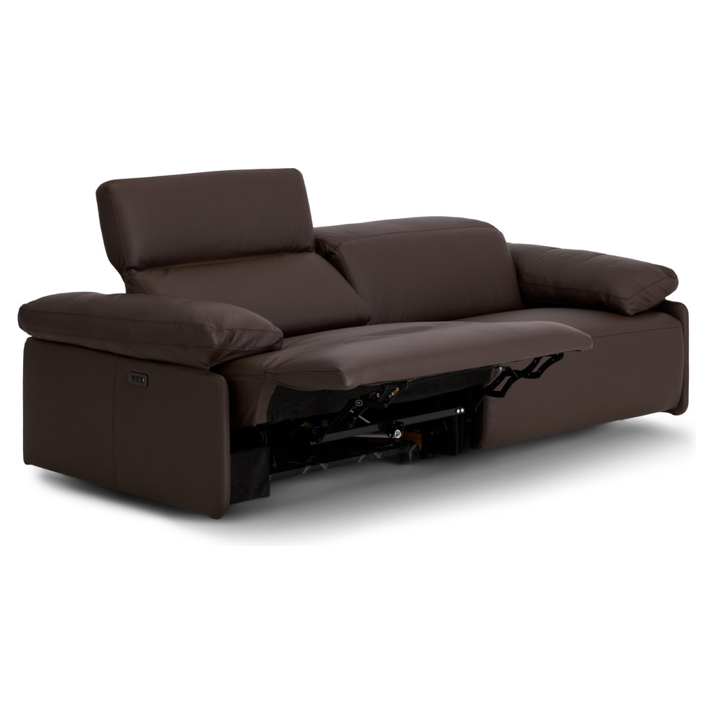 Discover the ultimate in relaxation with this genuine leather reclining sofa from the I857 collection. Its sleek, contemporary design blends perfectly with any modern interior, while its rich chocolate hue adds a touch of timeless sophistication.